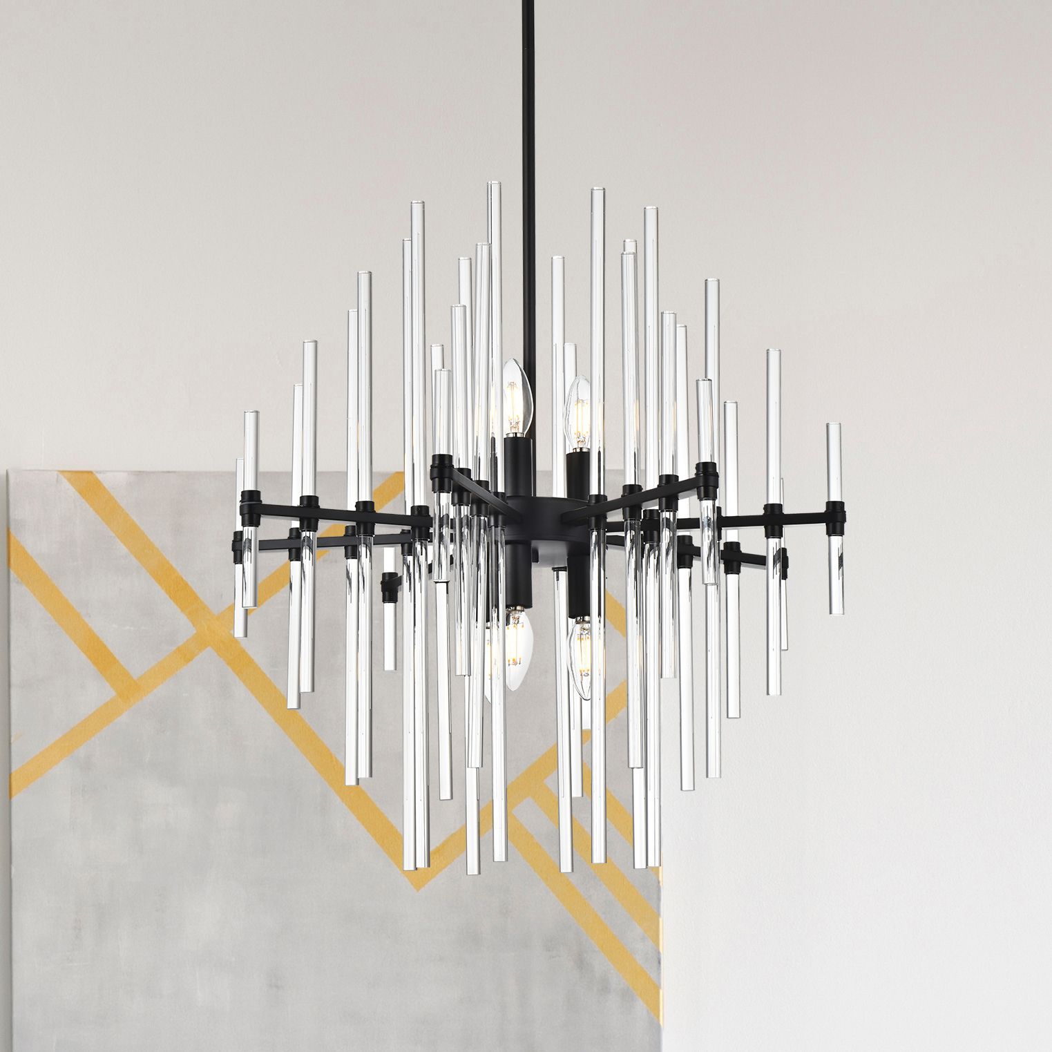 Elegant Lighting Rohan 30" Matte Black 6-Light Candelabra Chandelier