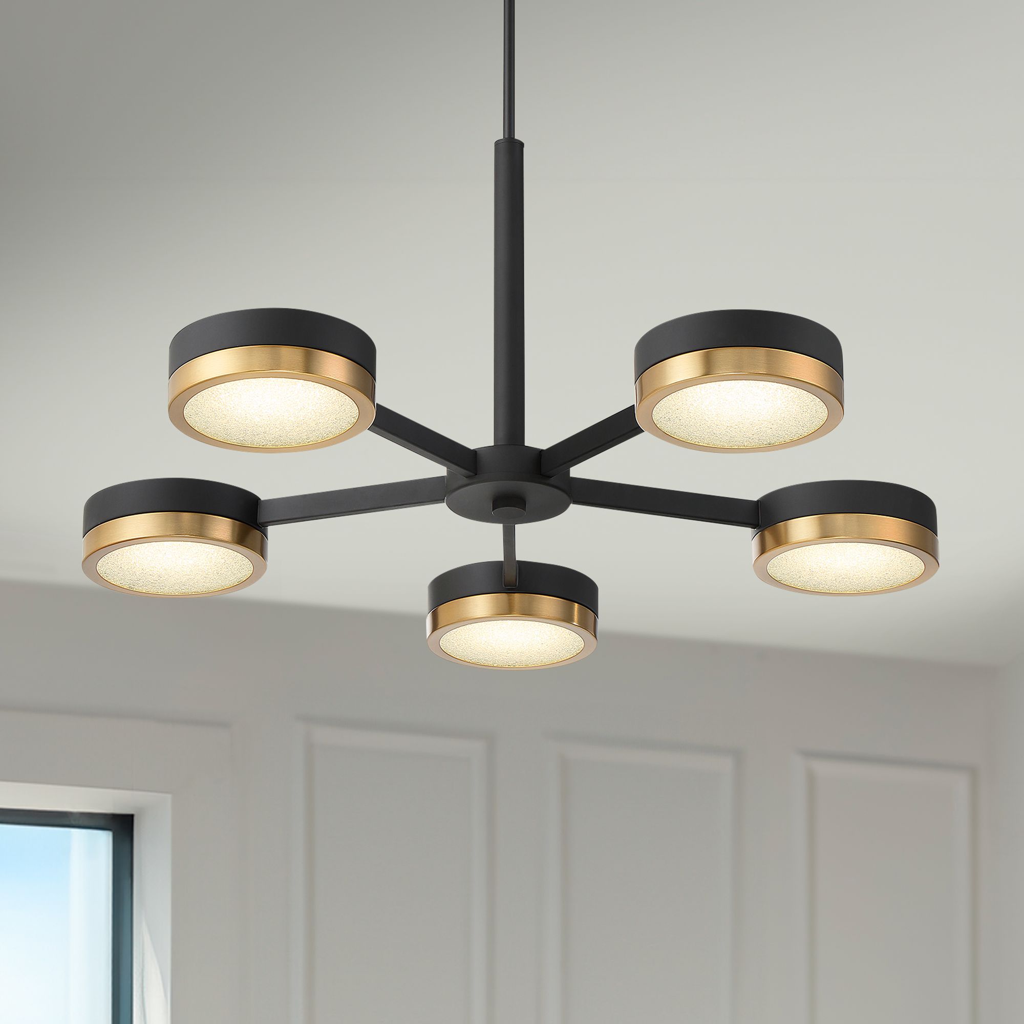 Ashor 34"W Matte Black and Warm Brass 5-Light LED Pendant