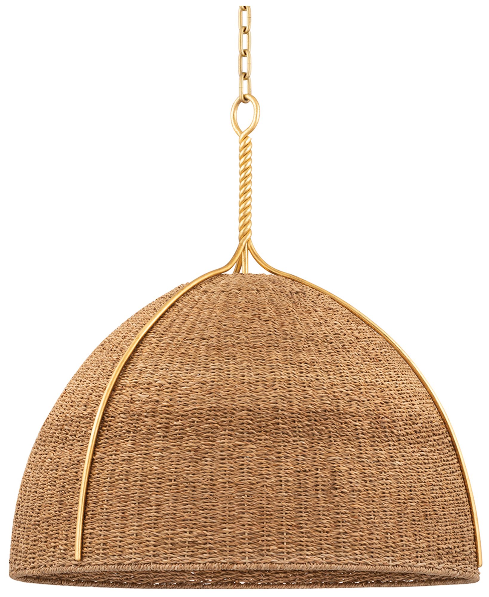 Hudson Valley Woodlawn 28 1/2" Gold and Natural Fiber Dome Pendant