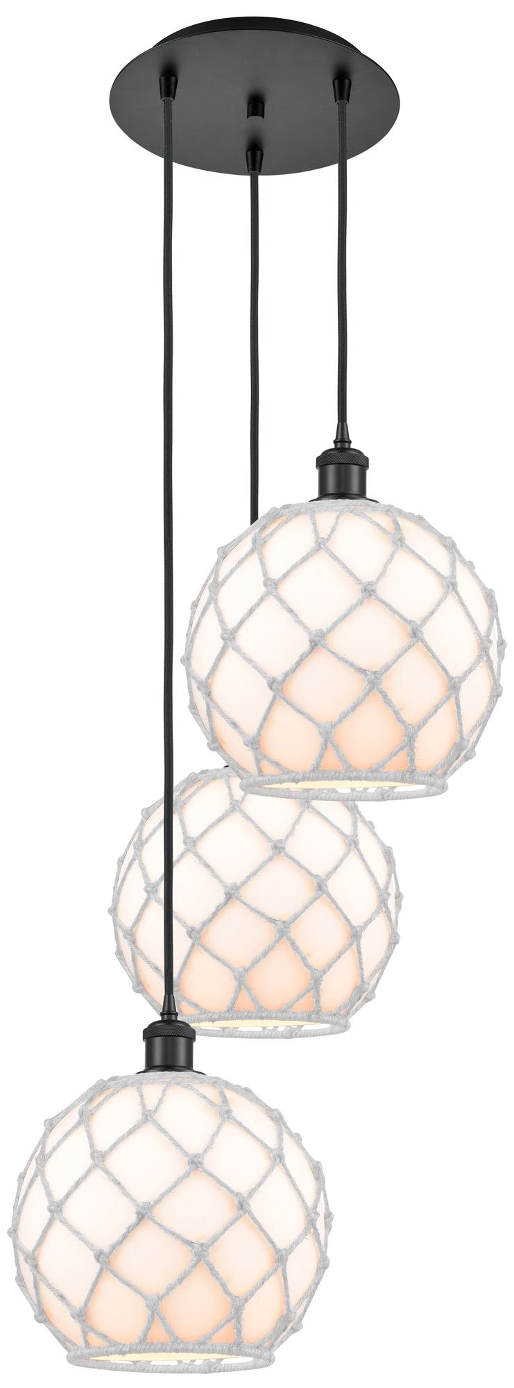 Ballston Farmhouse Rope 17"W 3 Light Black Cord Pendant w/ White Shade