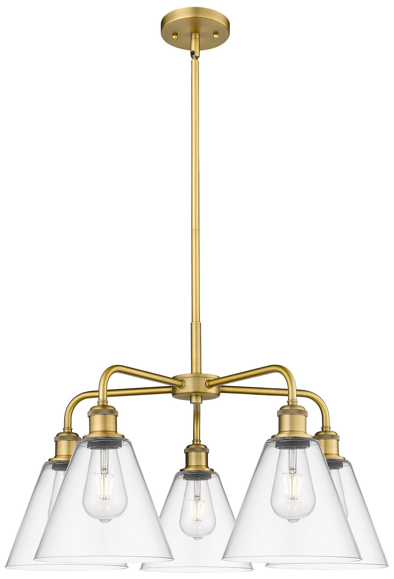 Berkshire 26"W 5 Light Brushed Brass Stem Hung Chandelier With Clear S