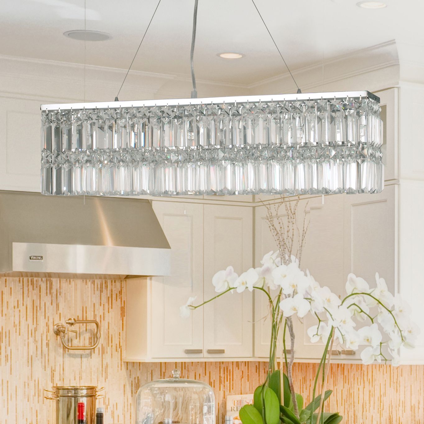 Athens Water Glass 4 Light 46" Island Light - Polished Chrome - Clear