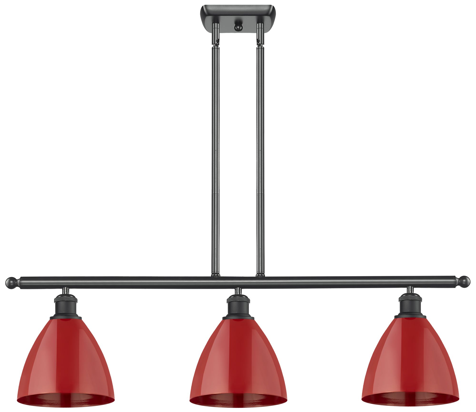 Plymouth Dome 36" Wide 3 Light Matte Black Island Light w/ Red Shade