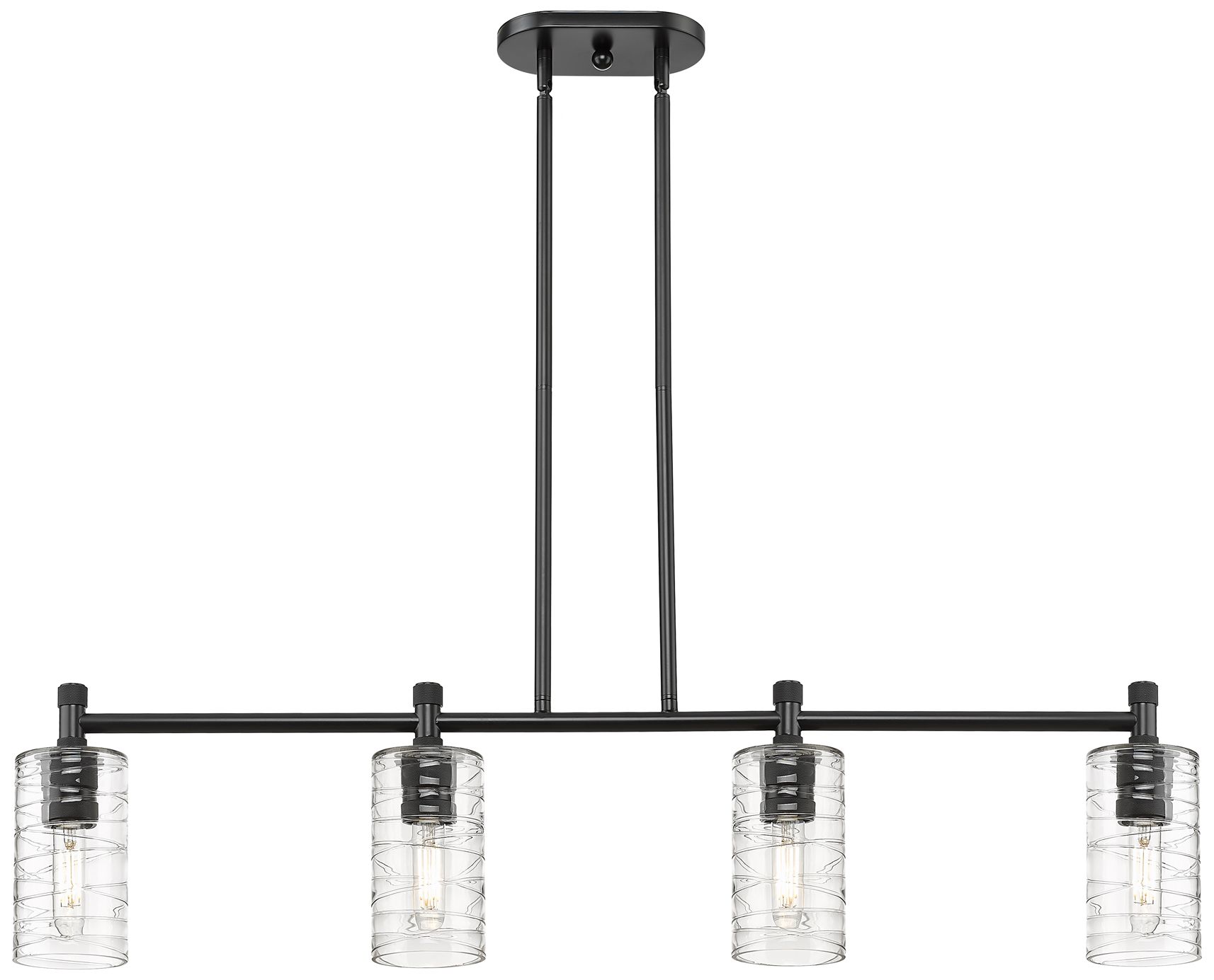 Crown Point 43 3/4"W Black 4-Light Island Pendant w/ Swirl Shades