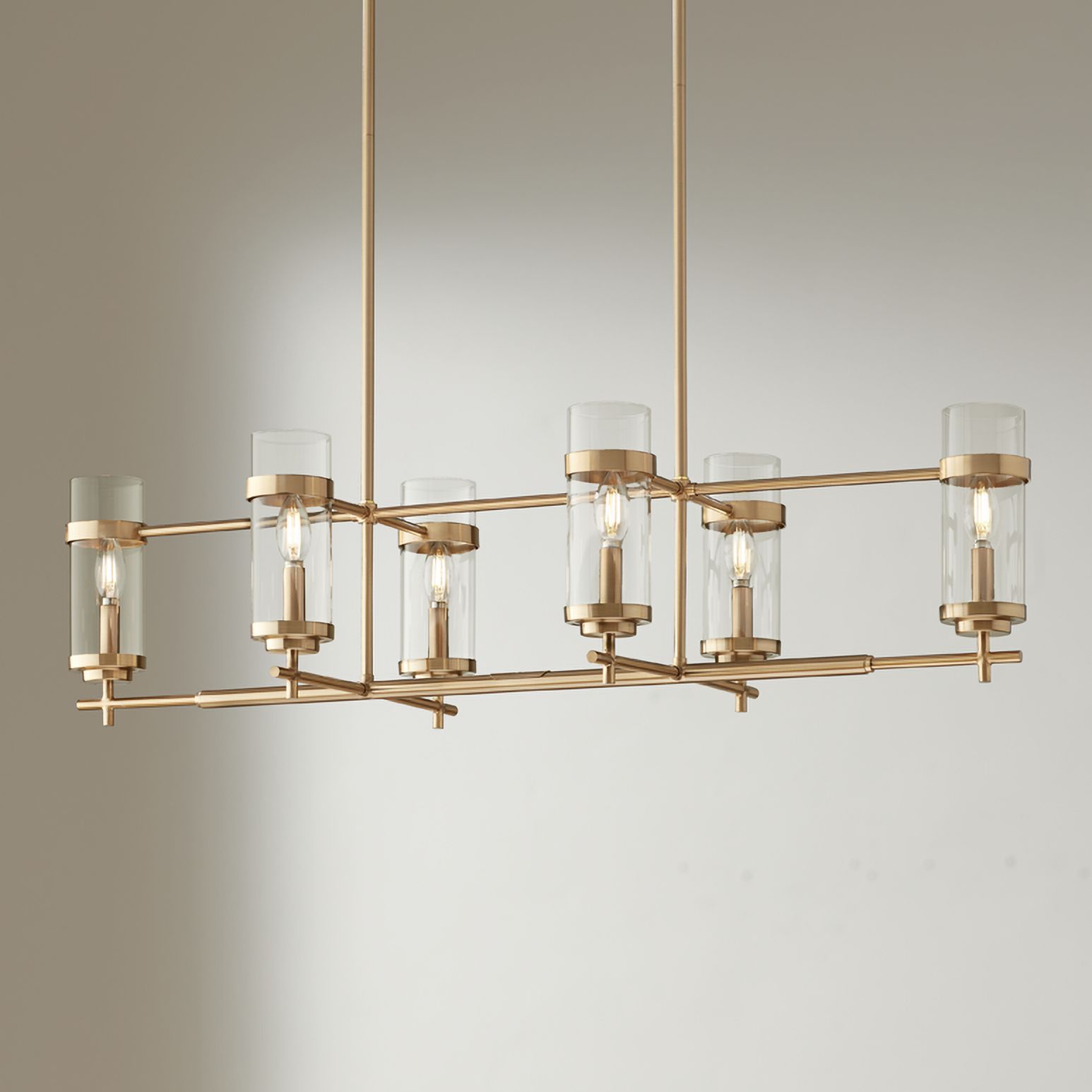 Possini Euro Mikel 42" Wide Gold Modern 6-Light Linear Island Pendant