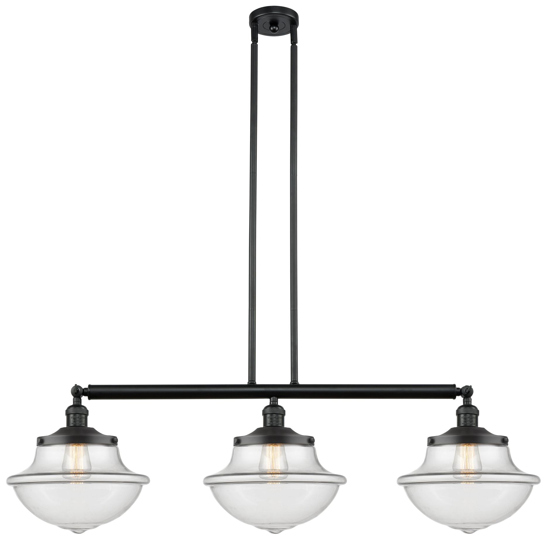 Oxford 42" Wide Matte Black and Clear Glass Island Pendant