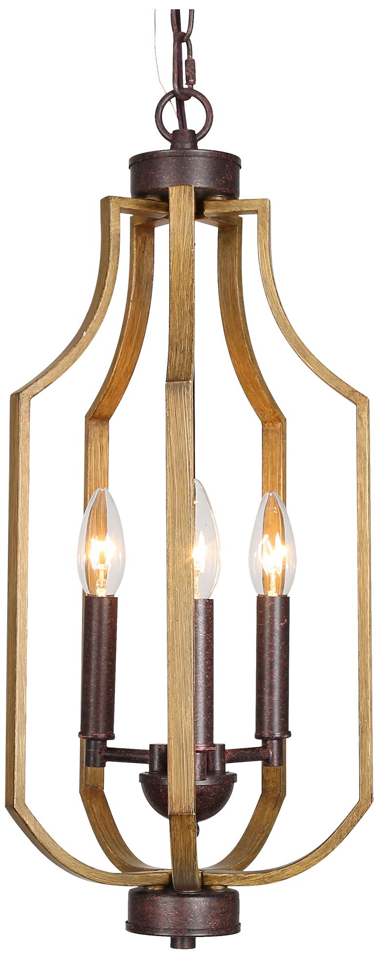 Gwalchmai 9" Wide Pine and Aged Iron 3-Light Mini Pendant