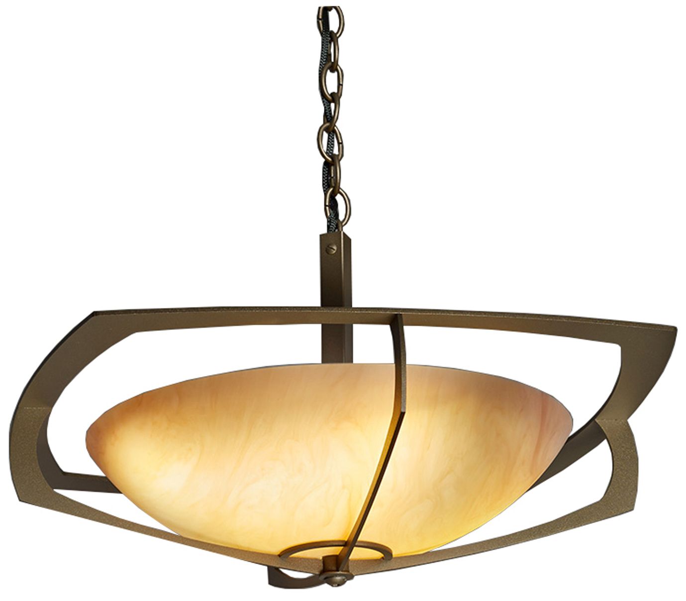 UltraLights Profiles 24"WDark Iron and Faux Alabaster Pendant Light