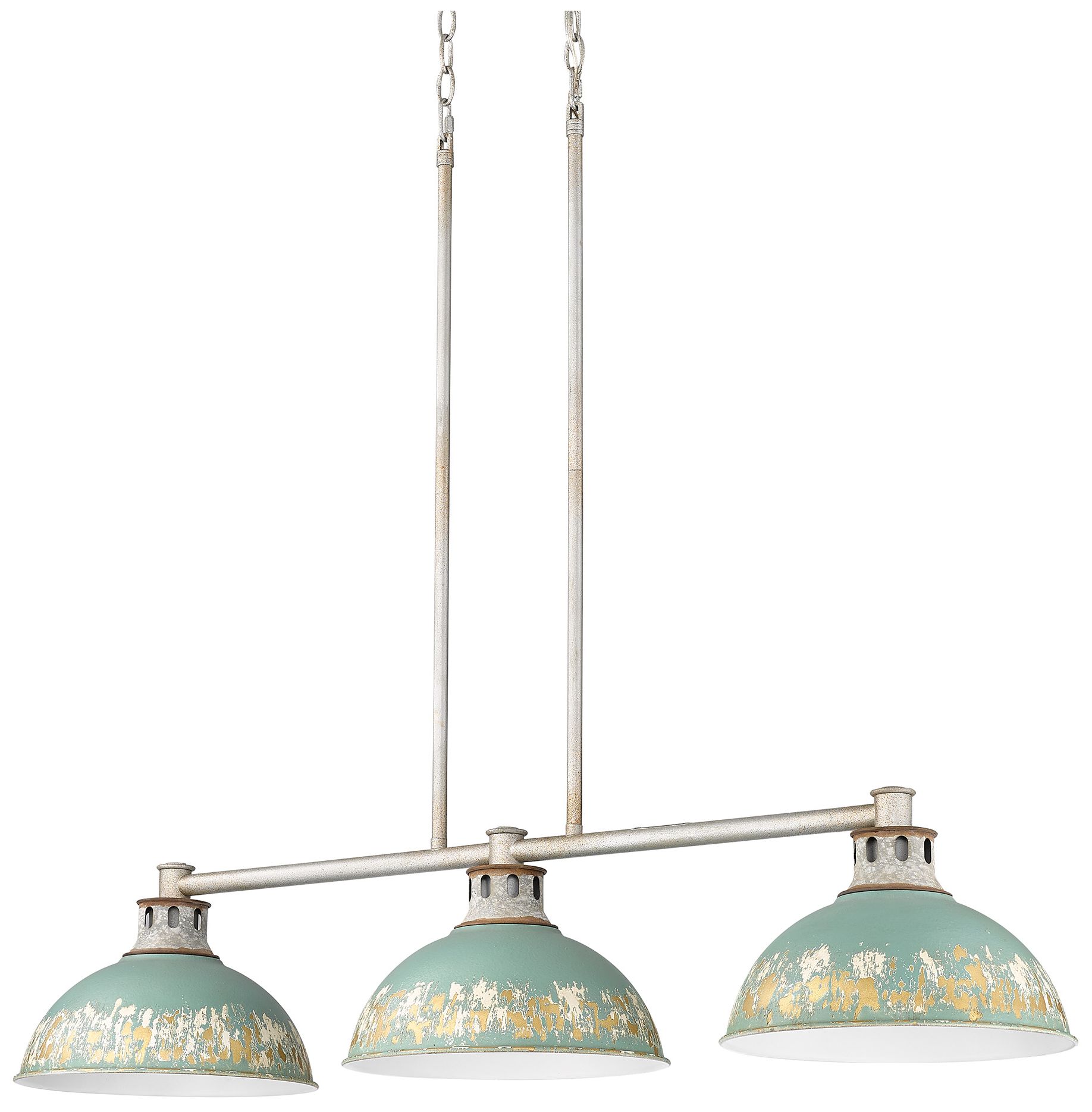 Kinsley 39"W Aged Galvanized and Teal 3-Light Linear Pendant