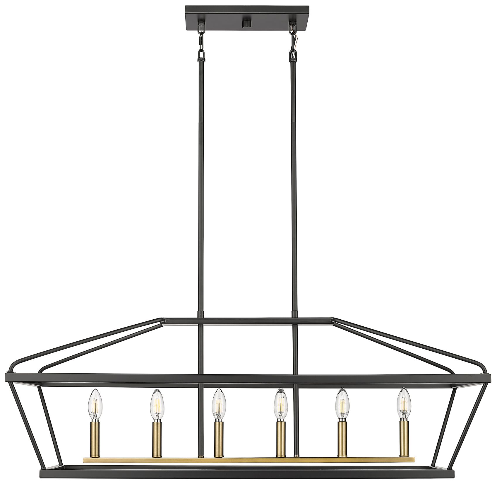 Surrey 42" Wide Black and Brass 6-Light Linear Chandelier