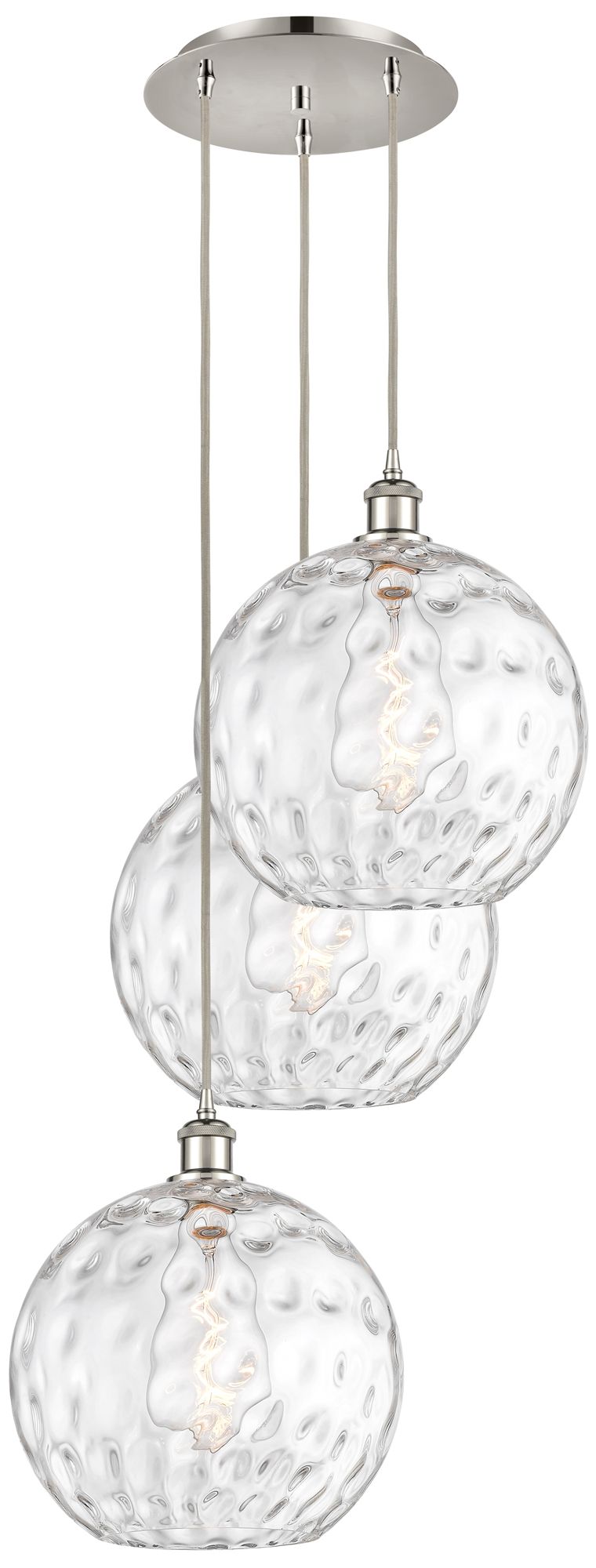 Athens 18.75"W 3 Light Polished Nickel Multi-Pendant w/ Water Glass Sh