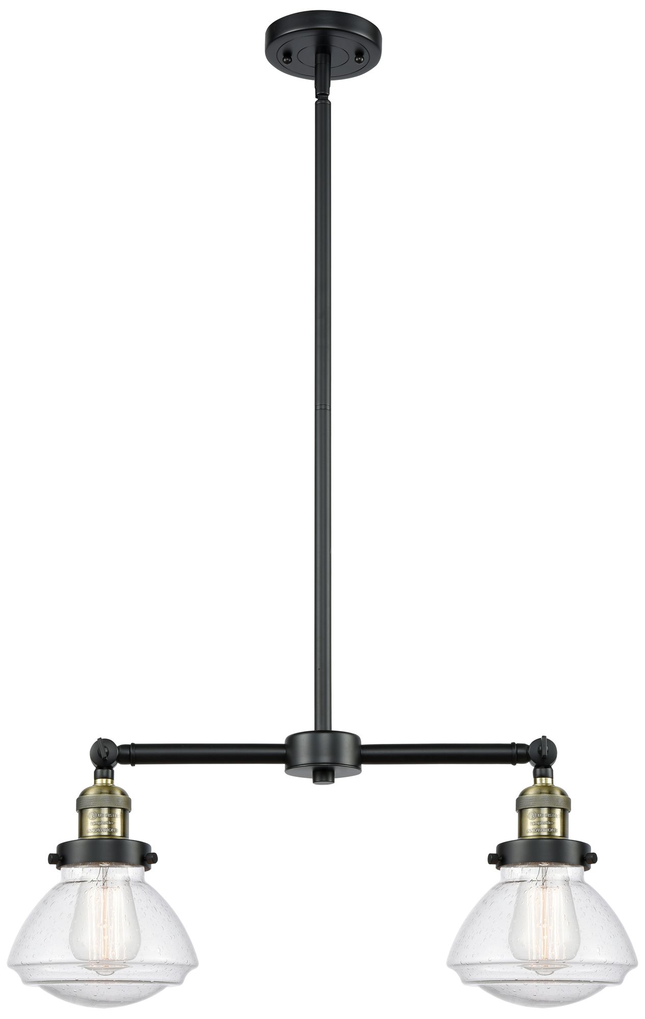Olean 21.75" Wide 2 Light Black Brass Island Light w/ Seedy Shade
