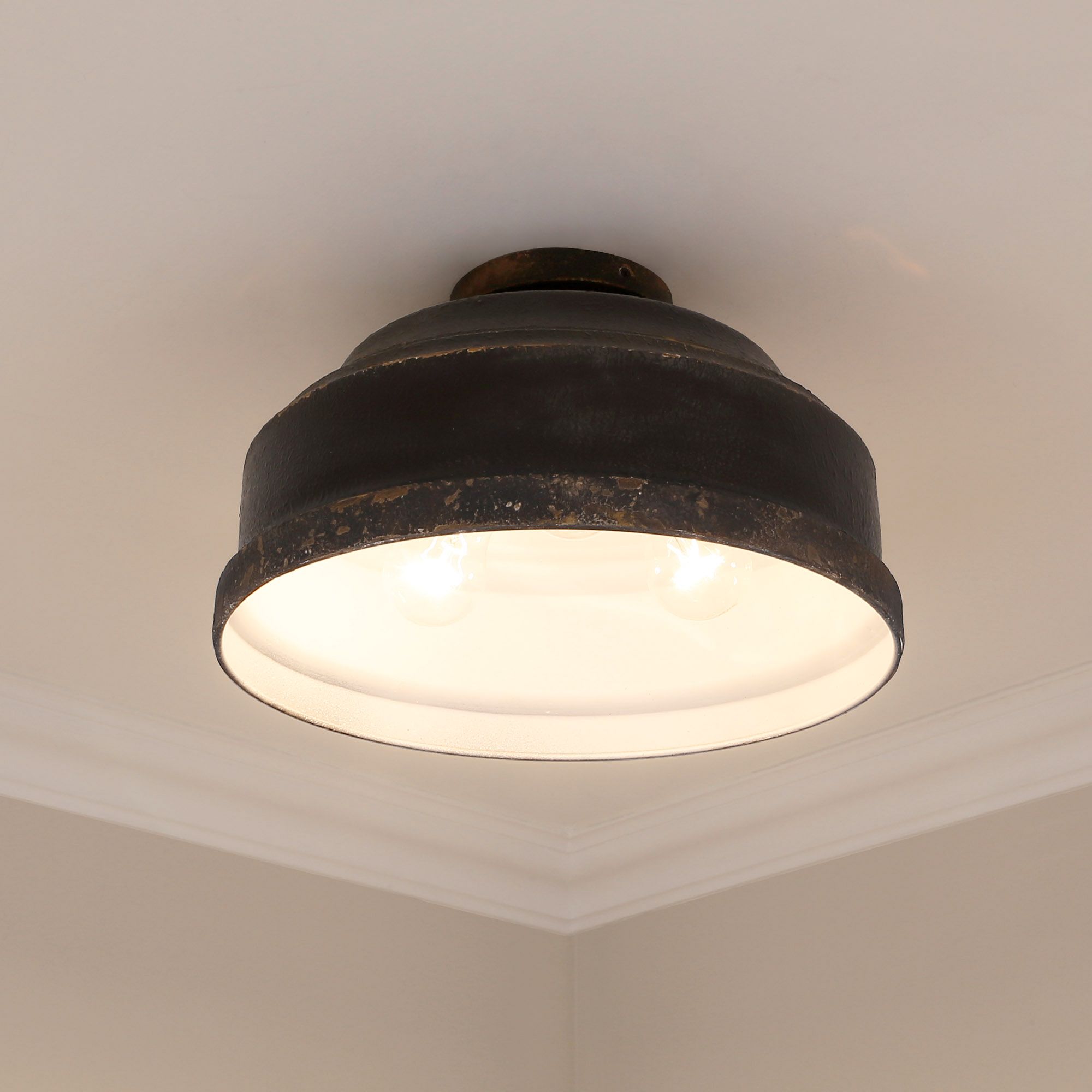 Golden Lighting Kinsley 14" Aged Black Galvanized Steel Ceiling Light