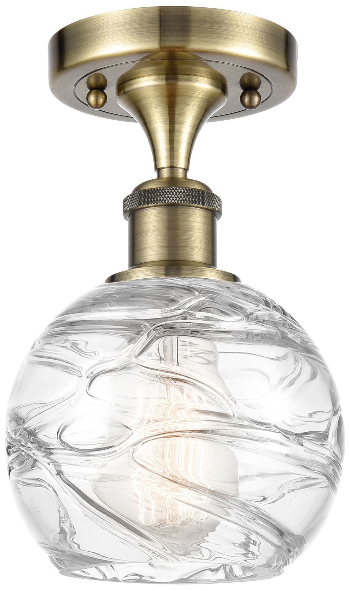 Athens Deco Swirl 6" LED Semi-Flush Mount - Brass - Clear Deco Swirl