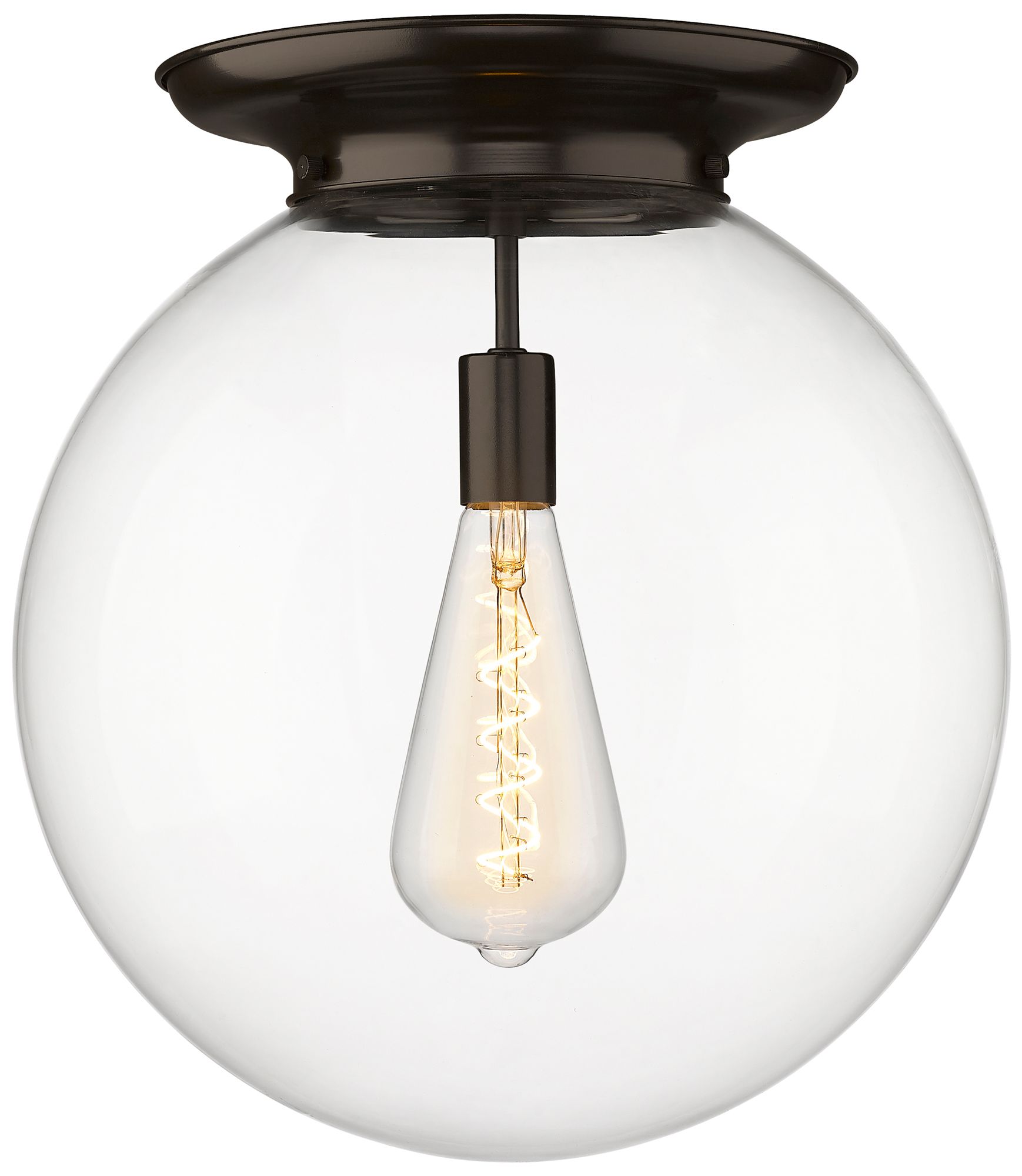 Beacon 15.75" Wide Oiled Brass Flush Mount With Clear Glass Shade