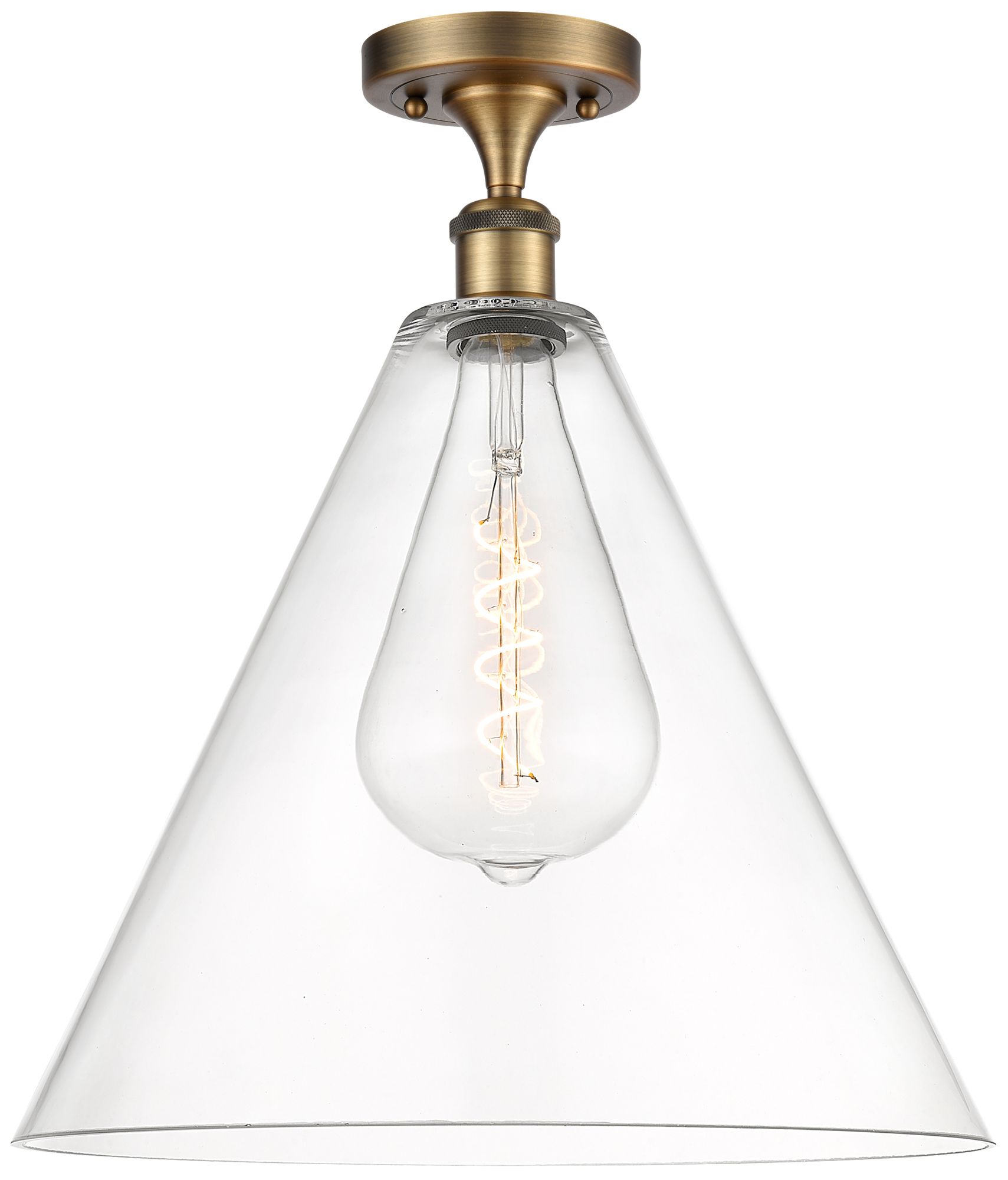 Ballston Urban Cone 12" Semi-Flush Mount - Brushed Brass - Clear Shad