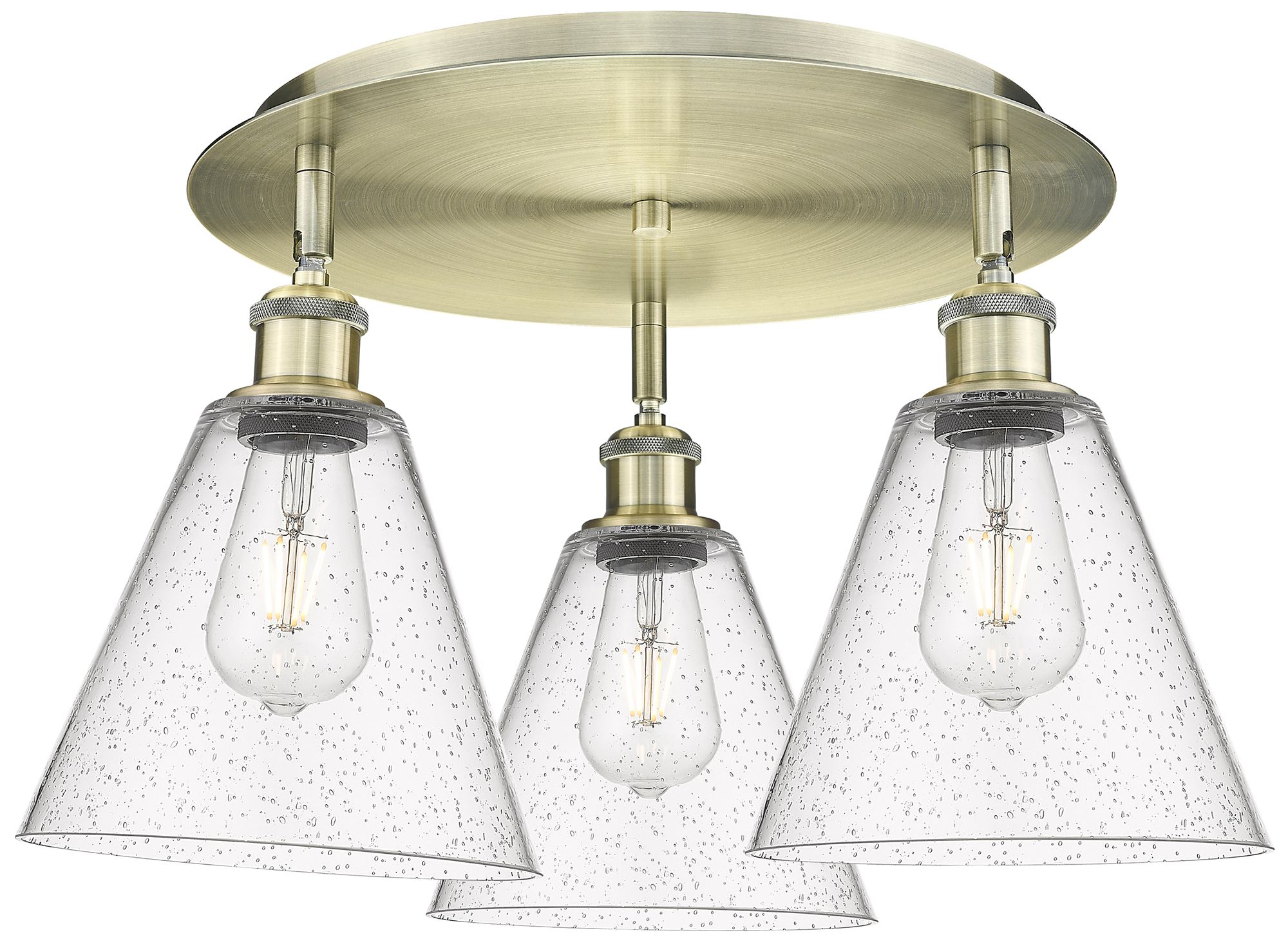Newton Cone 19.6" Wide 3 Light Brushed Brass Flush Mount with Seedy Sh