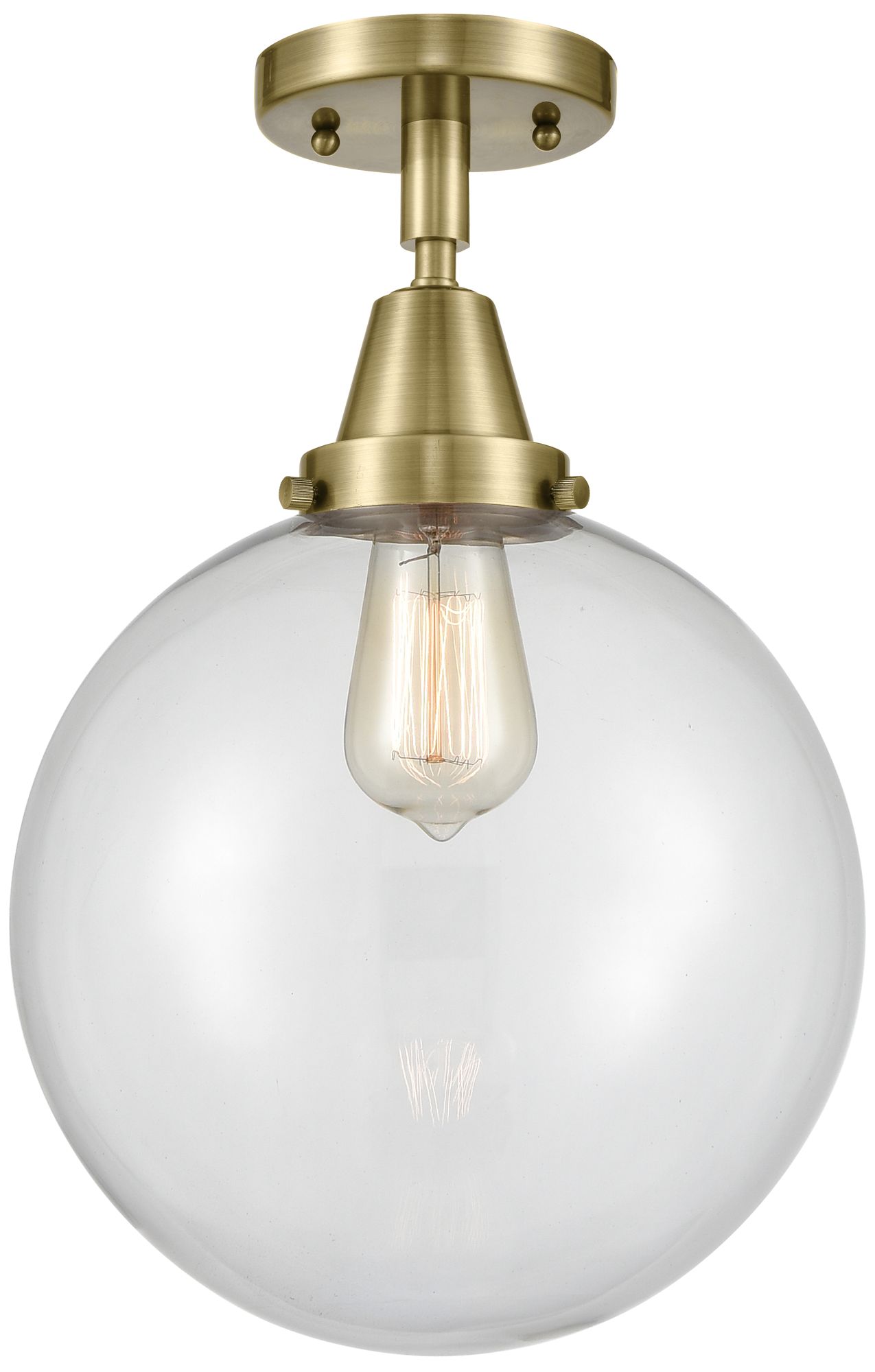 Caden Beacon 10" Flush Mount - Antique Brass - Clear Shade