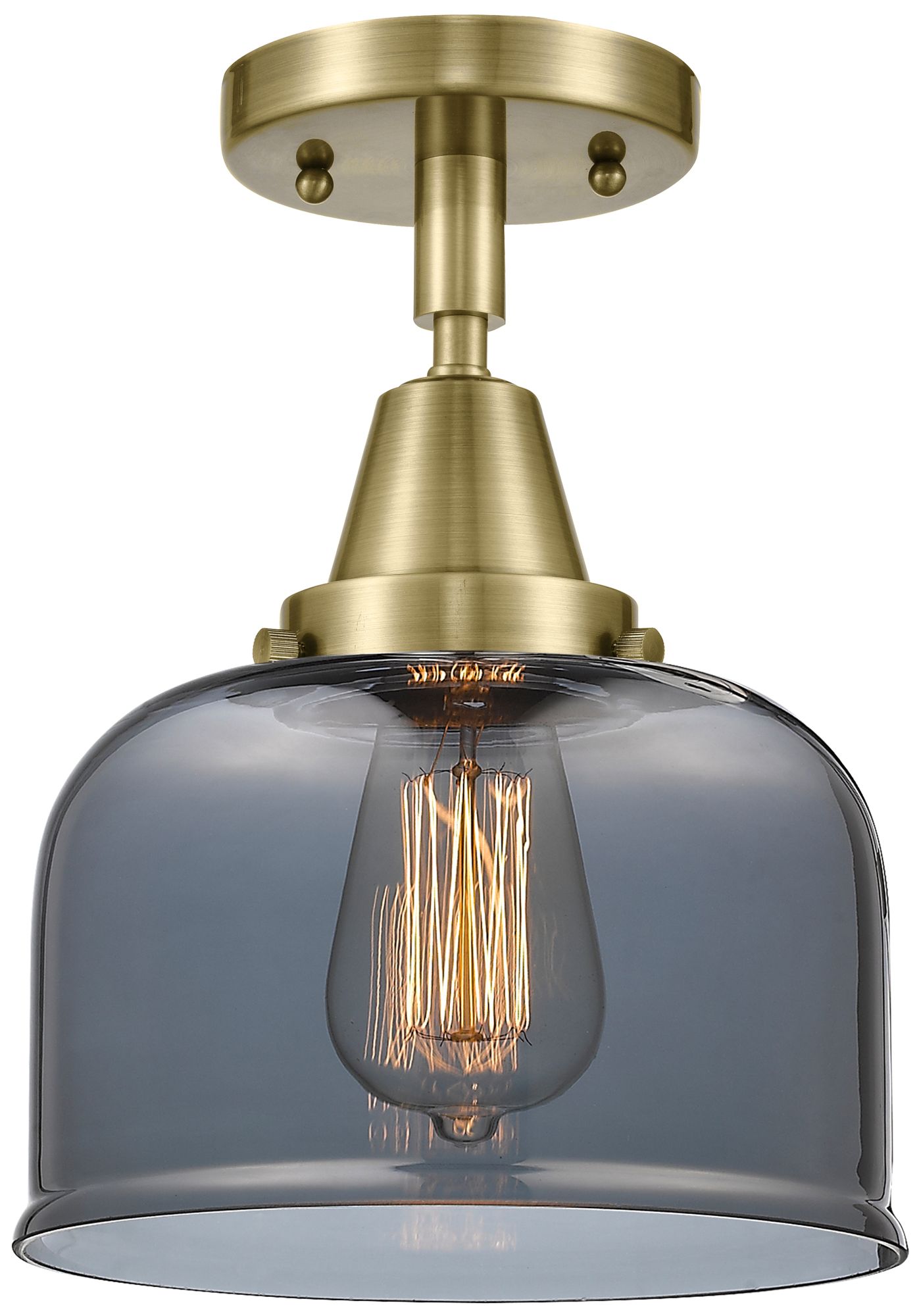 Caden Bell 8" Flush Mount - Antique Brass - Plated Smoke Shade