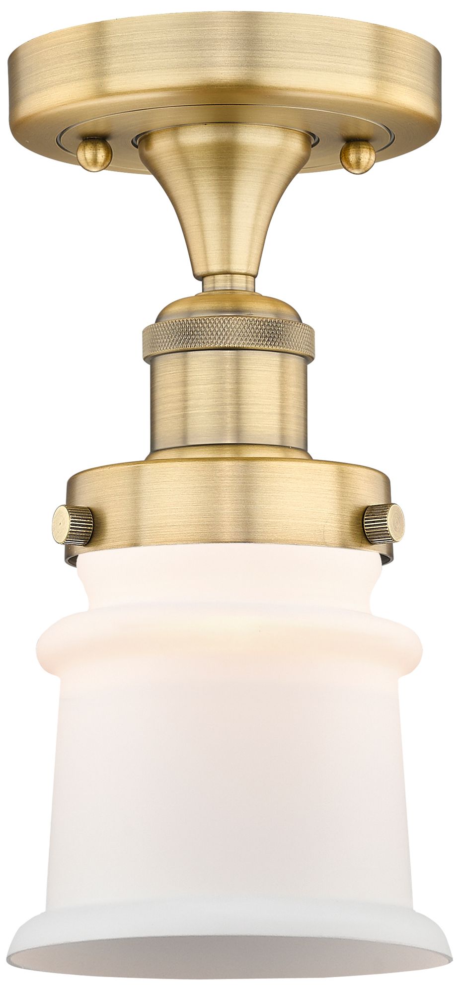 Canton 5.25"W Brushed Brass Semi.Flush Mount With Matte White Glass Sh