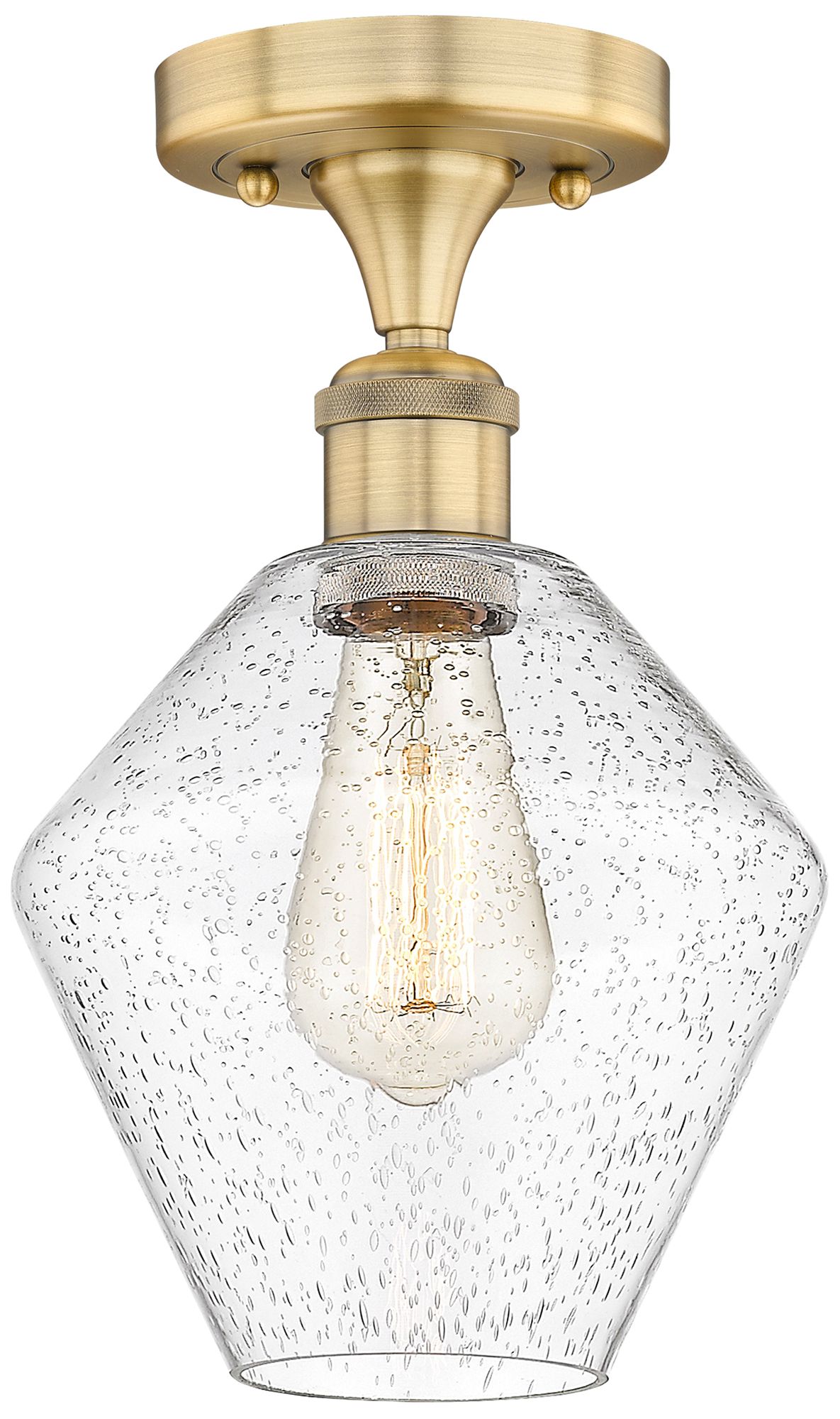 Cindyrella 8" Wide Brushed Brass Semi.Flush Mount With Seedy Glass Sha