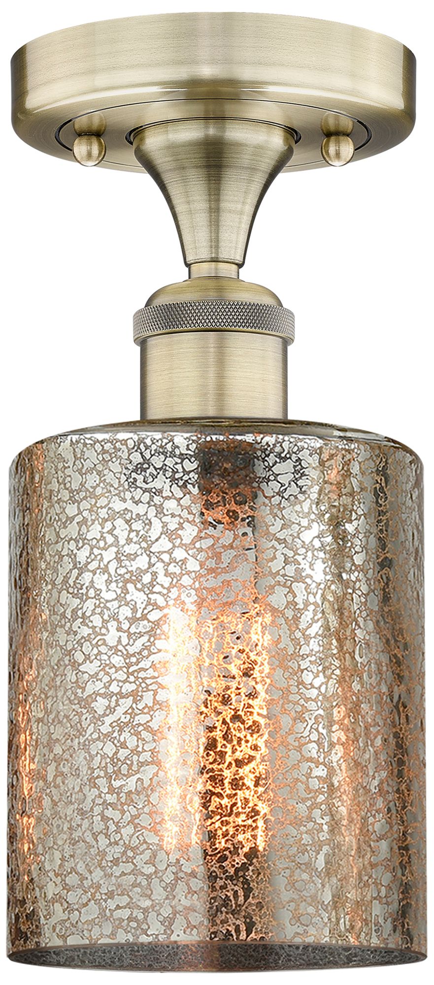 Cobbleskill 5" Wide Antique Brass Semi.Flush Mount With Mercury Glass