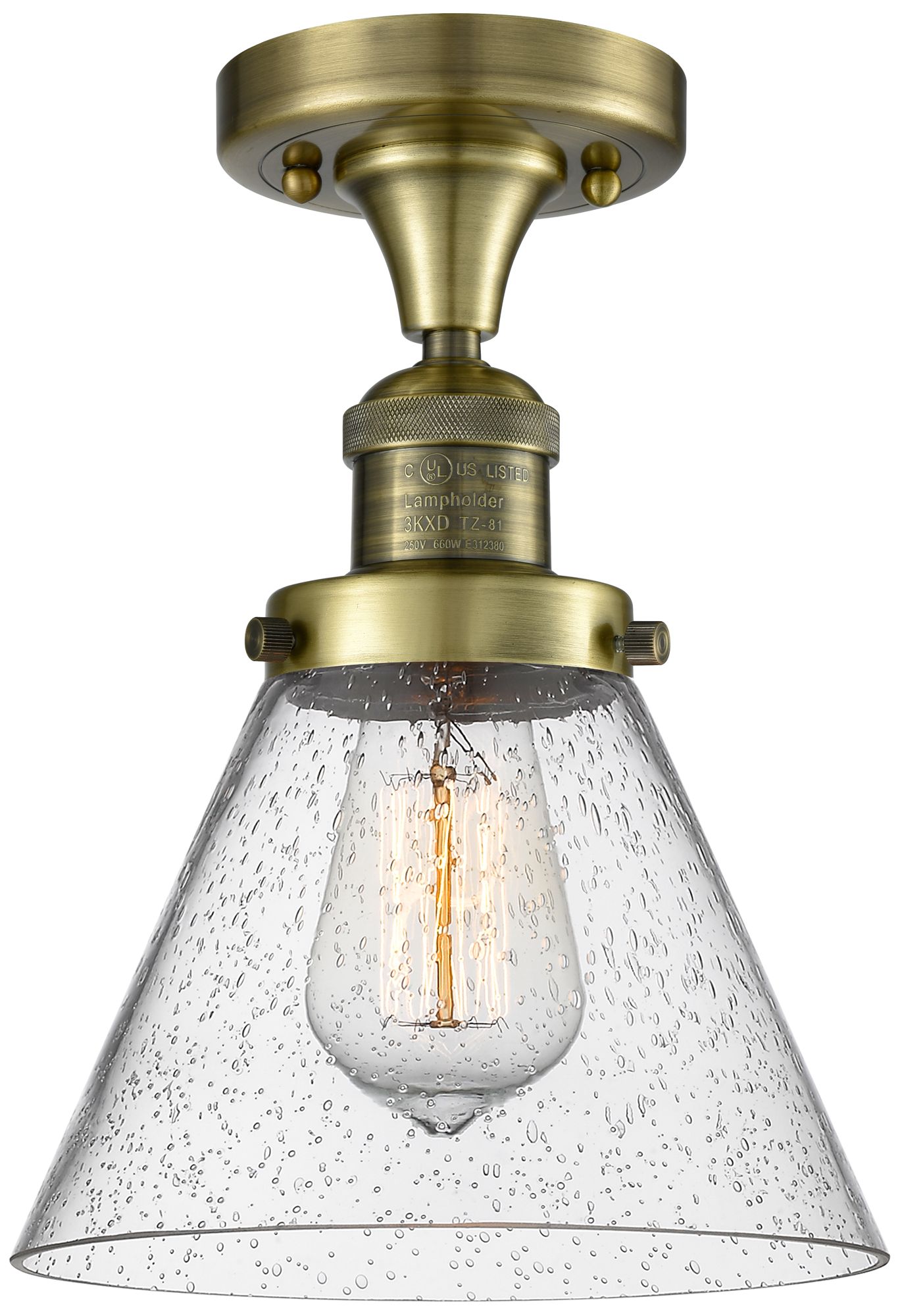 Cone 7.75" Wide Antique Brass Semi Flush Mount w/ Seedy Shade