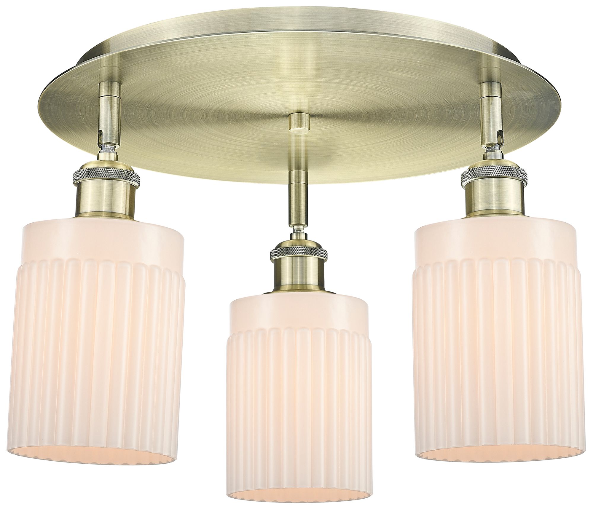 Hadley 16.25"W 3 Light Antique Brass Flush Mount w/ Matte White Glass