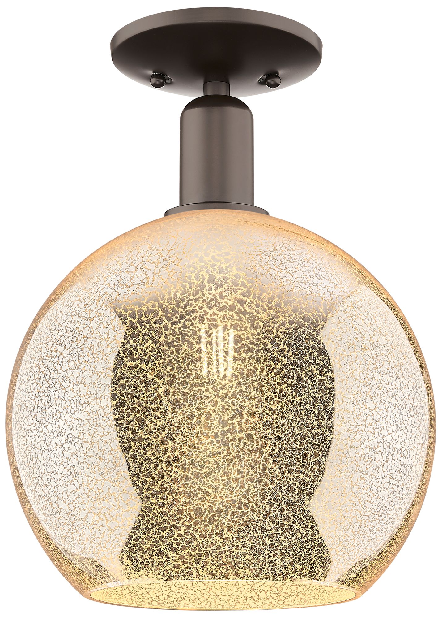 Arcadia Athens 10"W Oiled Bronze Semi.Flush Mount w/ Mercury Shade
