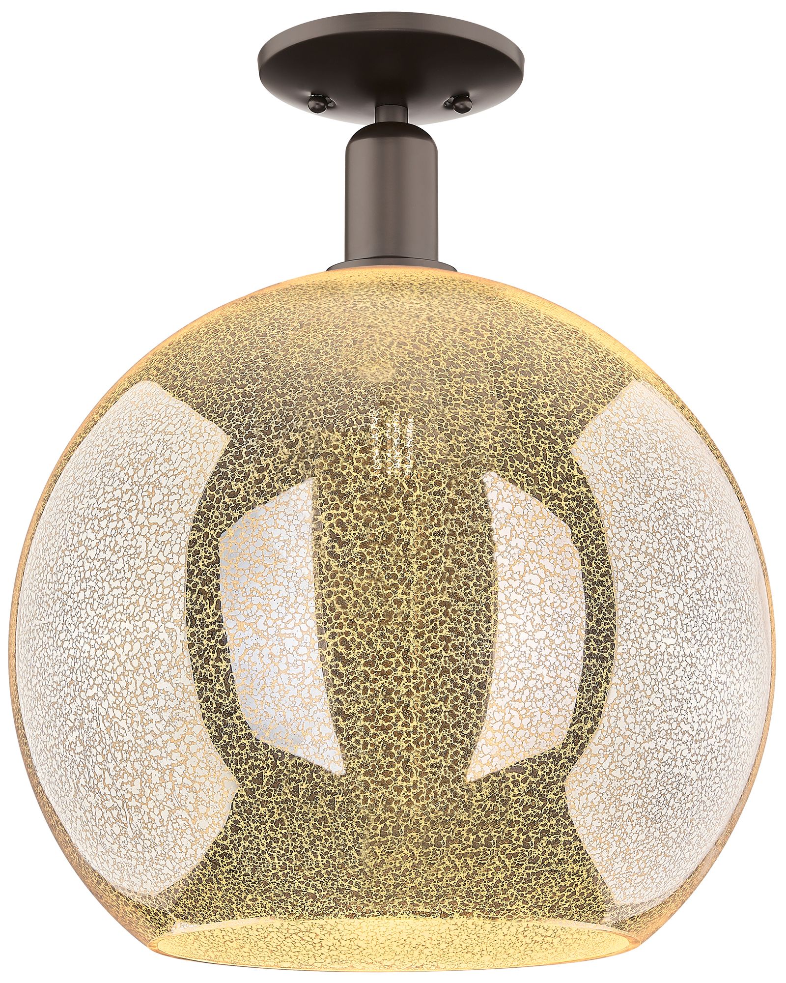 Arcadia Athens 14"W Oiled Bronze Semi.Flush Mount w/ Mercury Shade