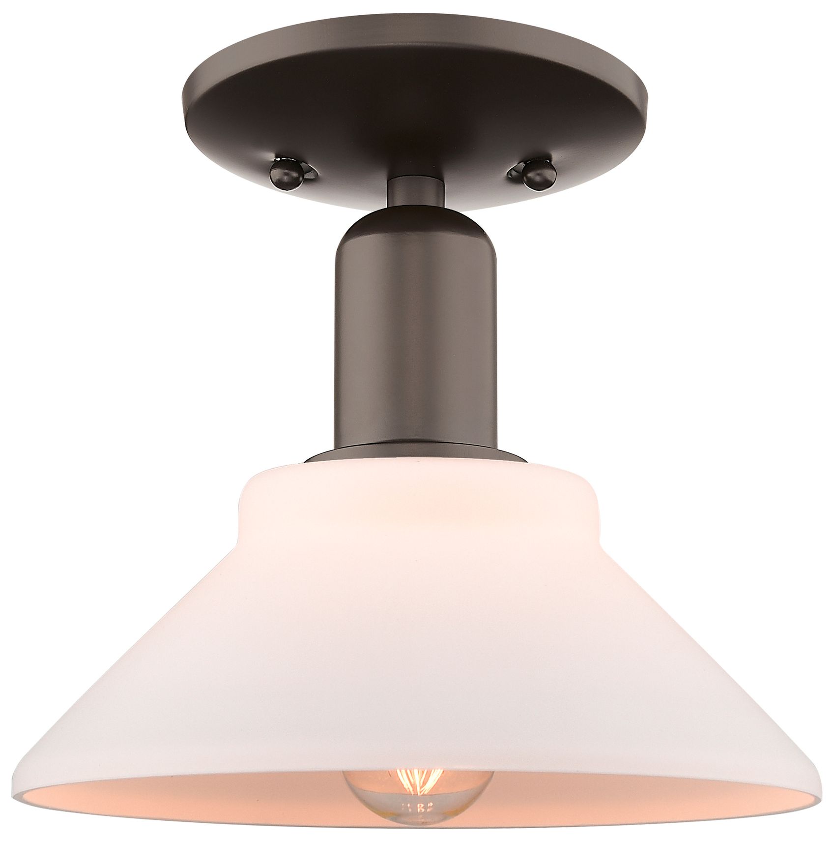Arcadia Orwell 8"W Oiled Bronze Semi.Flush Mount w/ Matte White Shade
