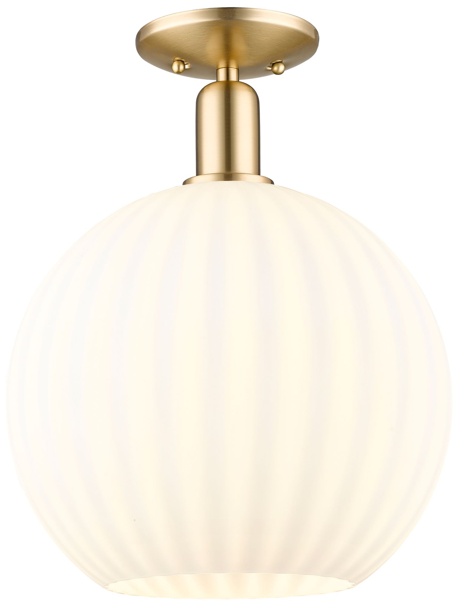 Arcadia White Venetian 12" Wide Champagne Bronze Semi.Flush Mount