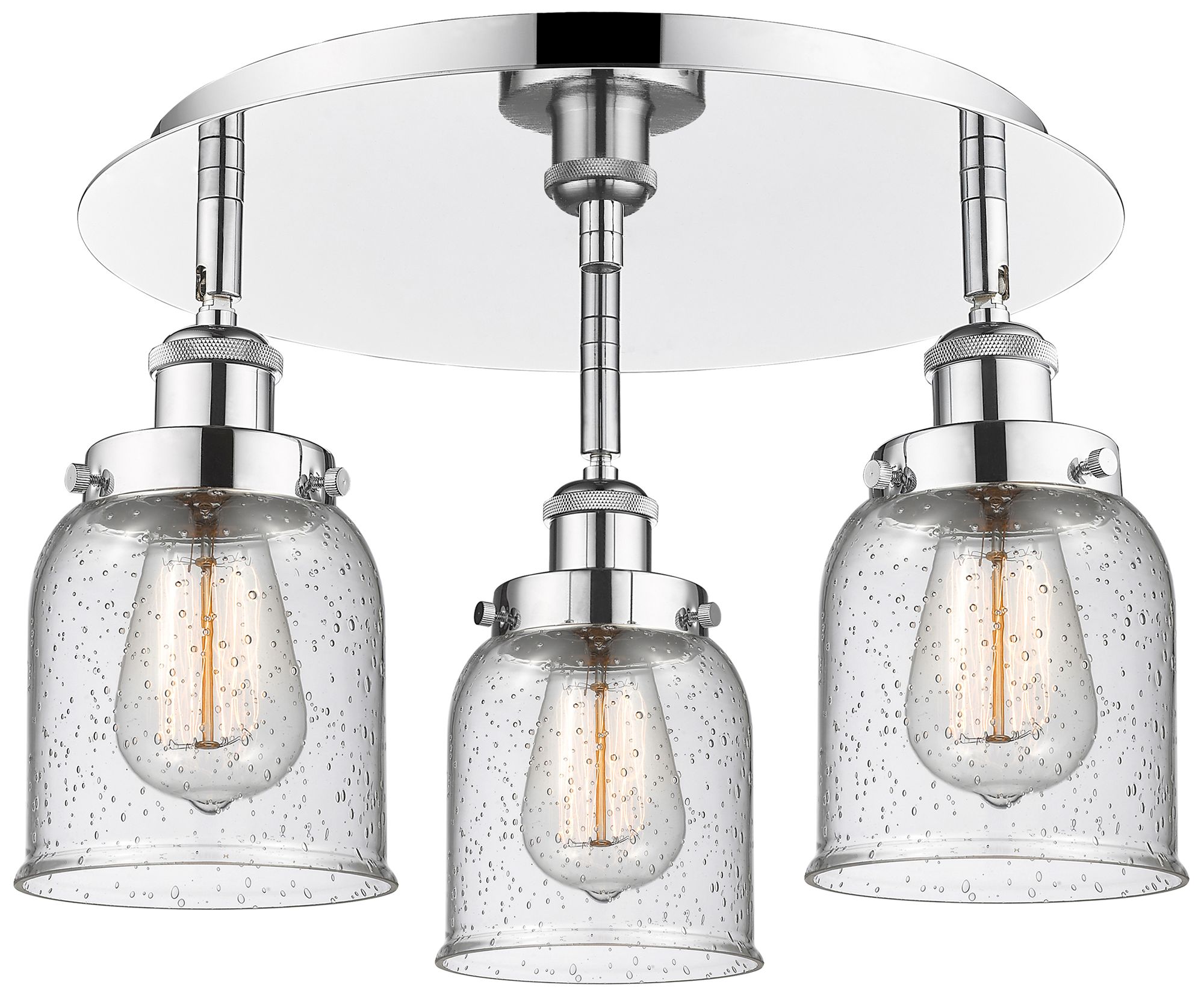 Bell 16.75" Wide 3 Light Polished Chrome Flush Mount With Seedy Glass