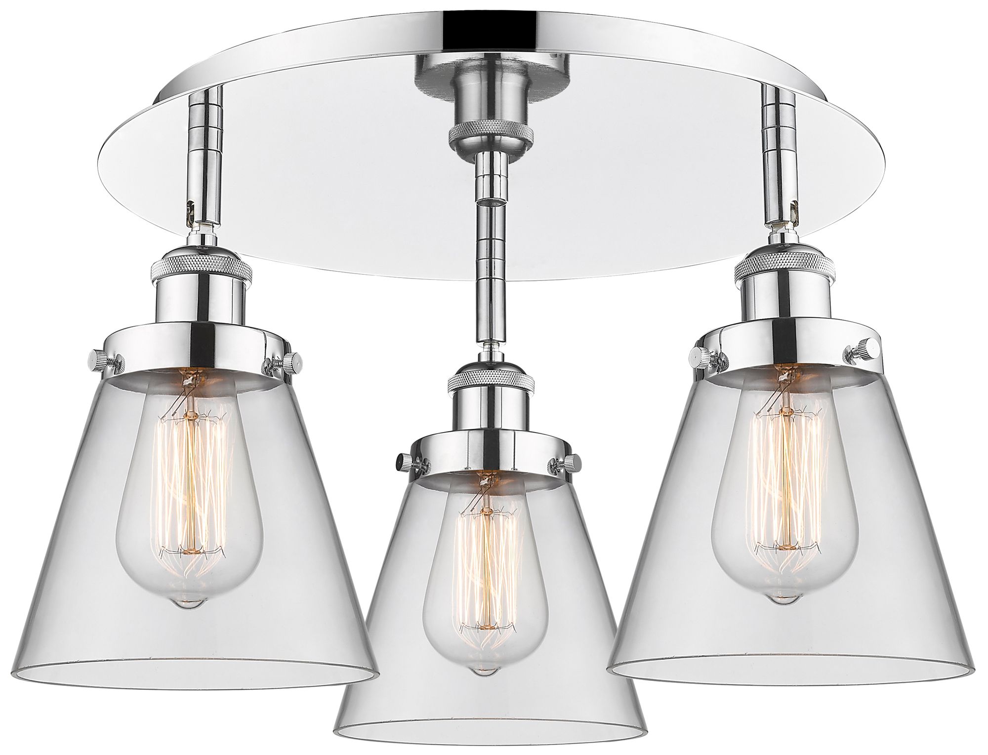 Cone 18" Wide 3 Light Polished Chrome Flush Mount With Clear Glass Sha