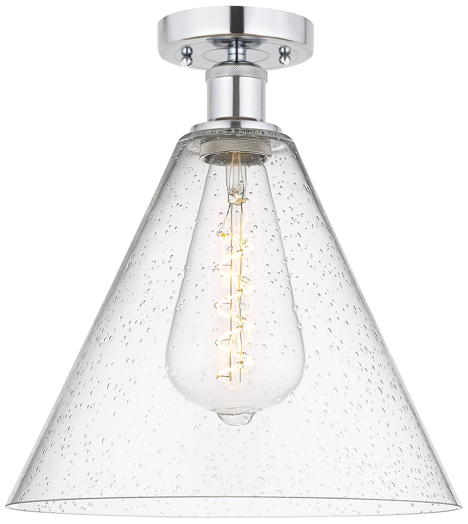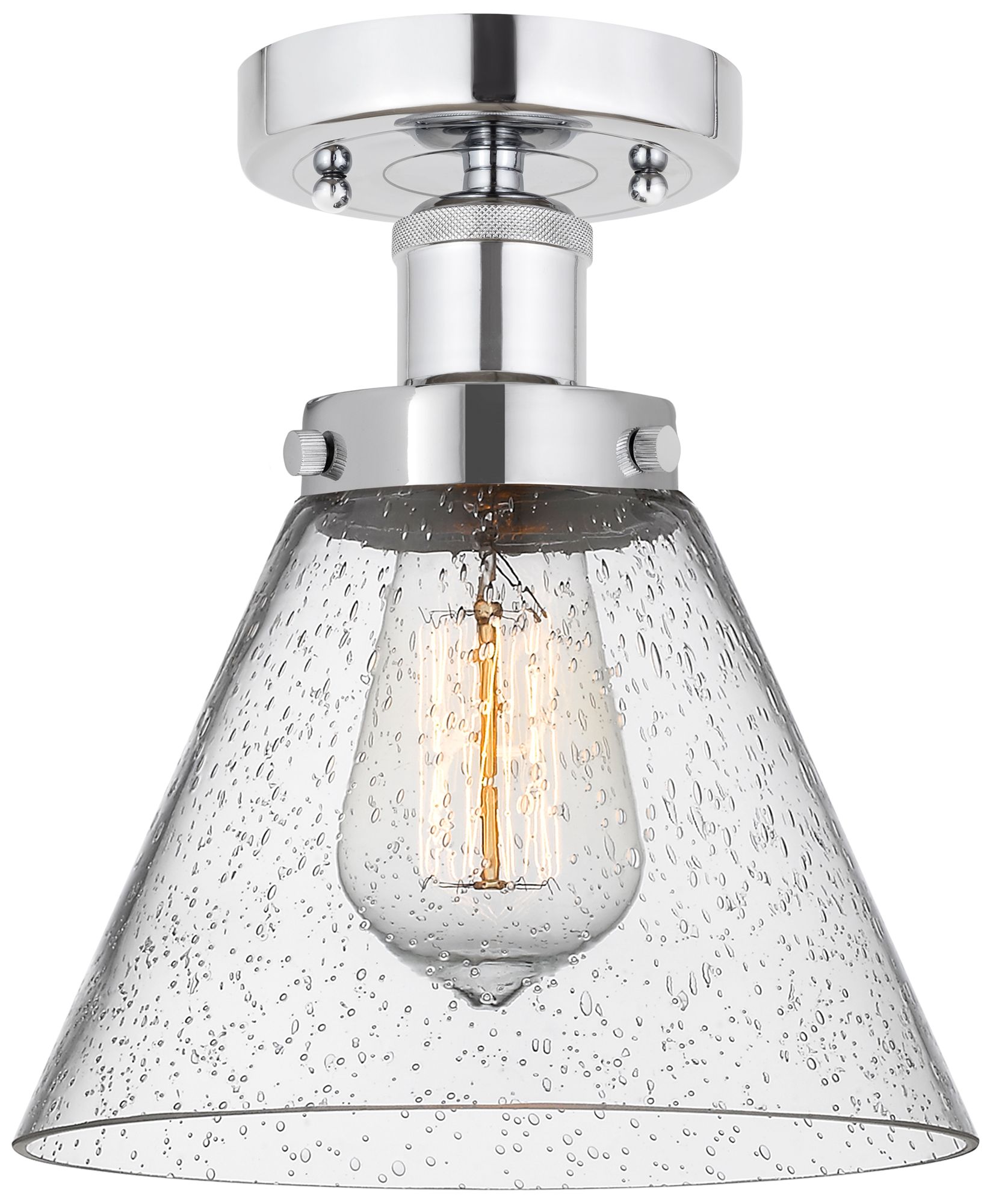 Edison Large Cone 7" Polished Chrome Semi Flush Mount w/ Seedy Shade