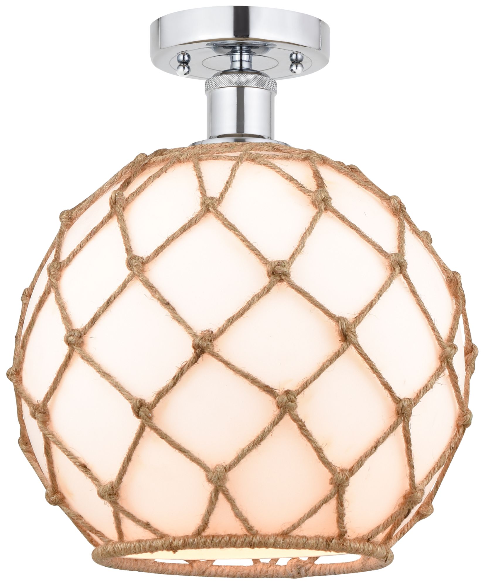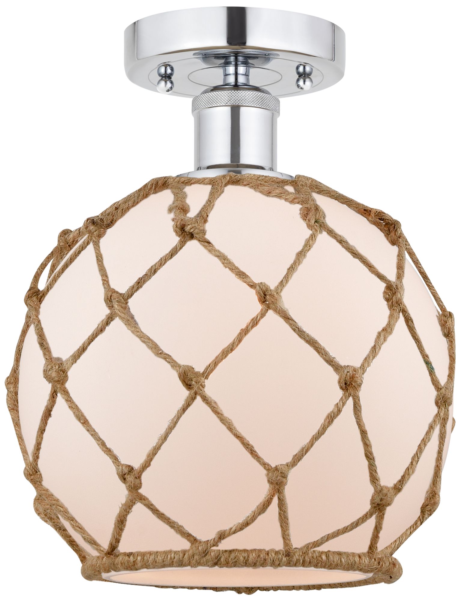 Edison Farmhouse 10" Chrome Semi Flush w/ White & Brown Rope Shade