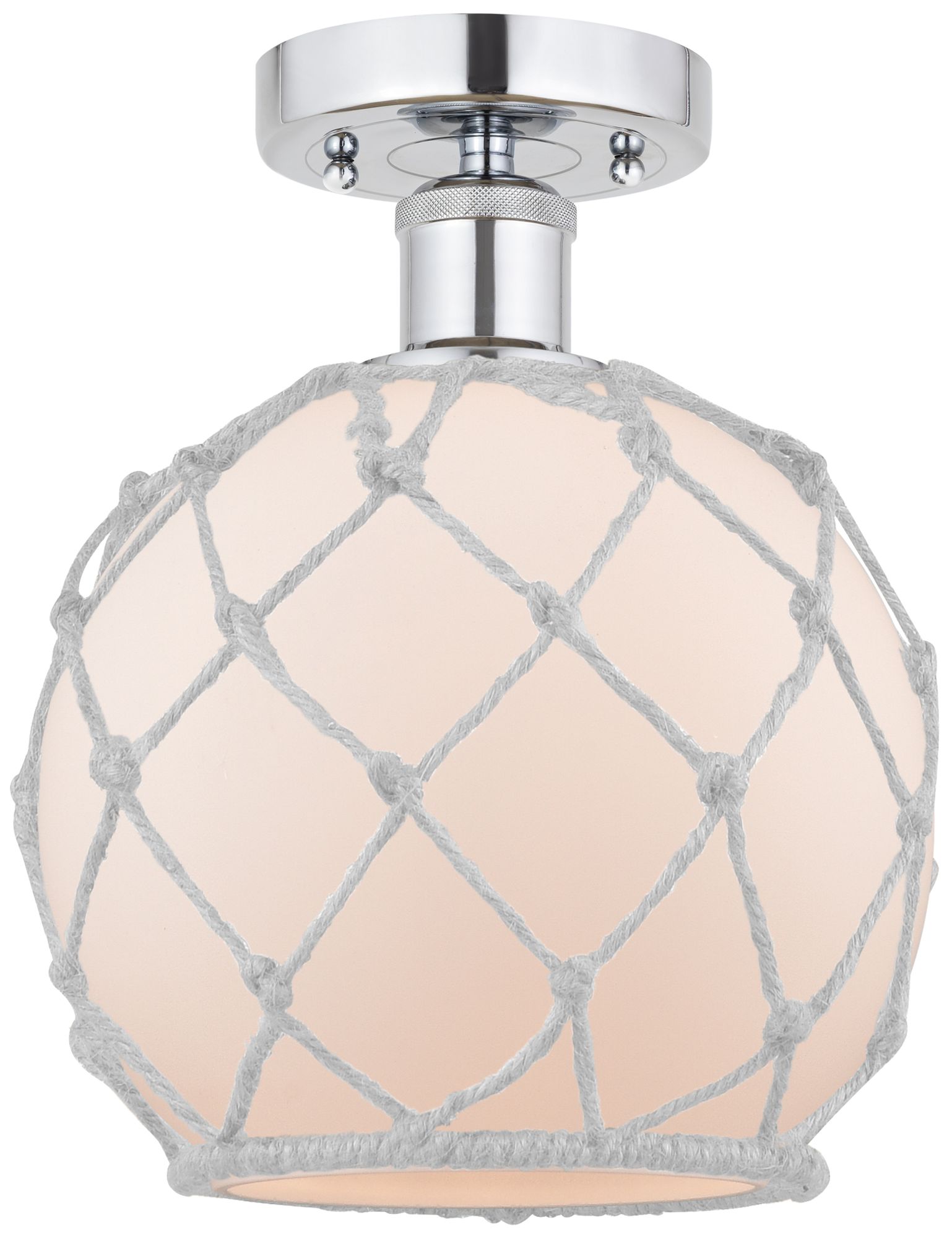 Edison Farmhouse 8" Chrome Semi Flush w/ White Rope Shade