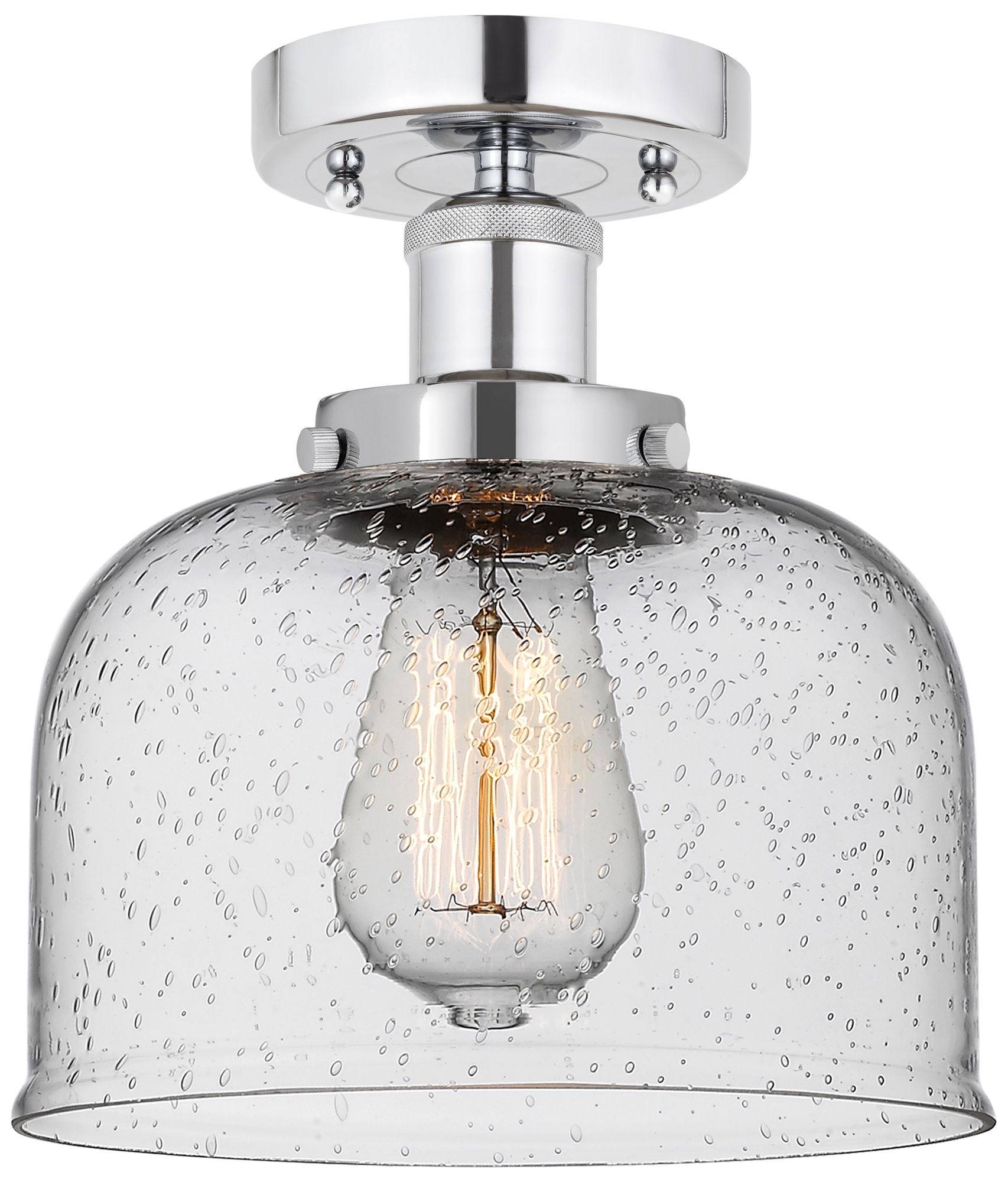 Edison Large Bell 7" Polished Chrome Semi Flush Mount w/ Seedy Shade
