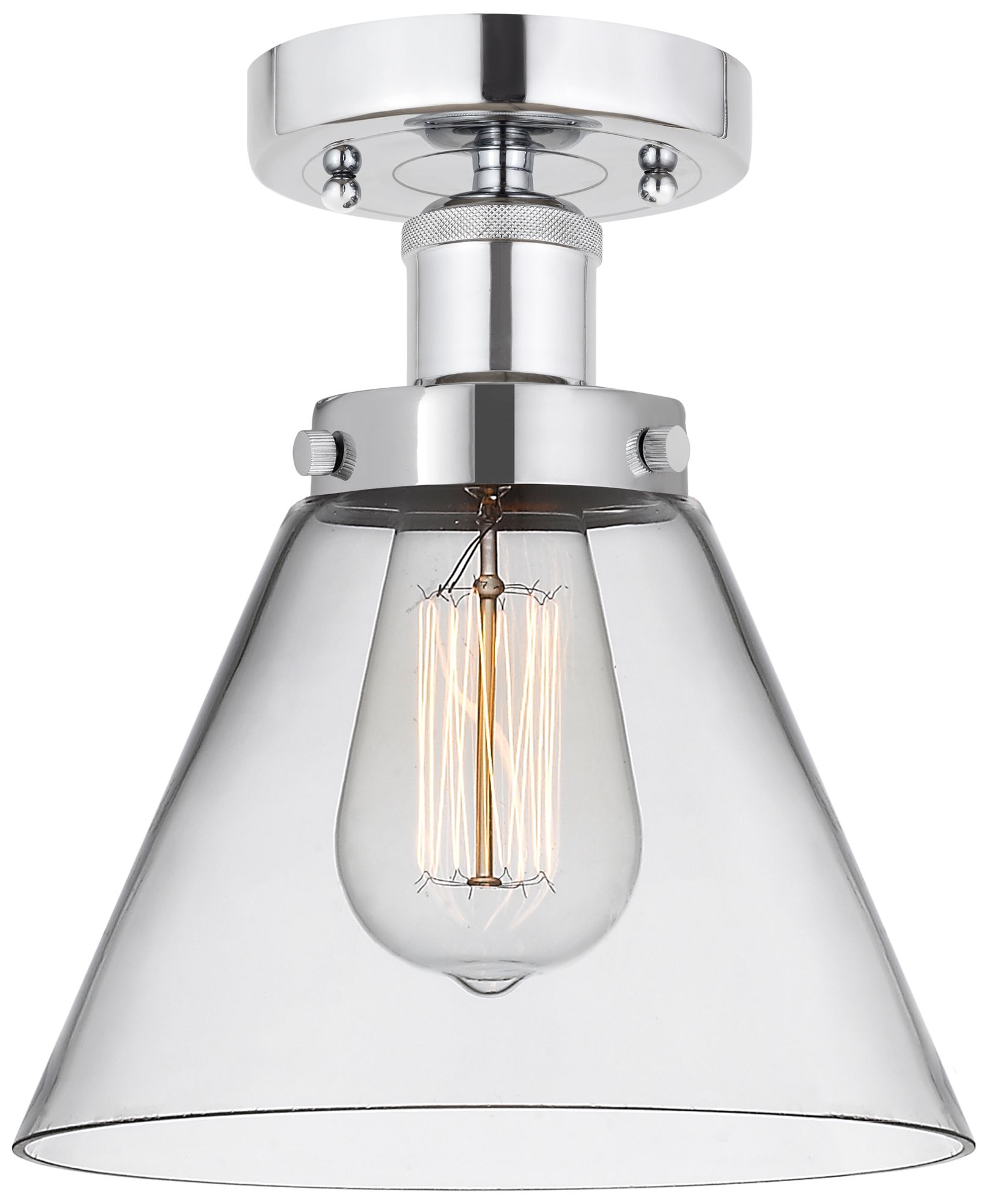 Edison Large Cone 7" Polished Chrome Semi Flush Mount w/ Clear Shade