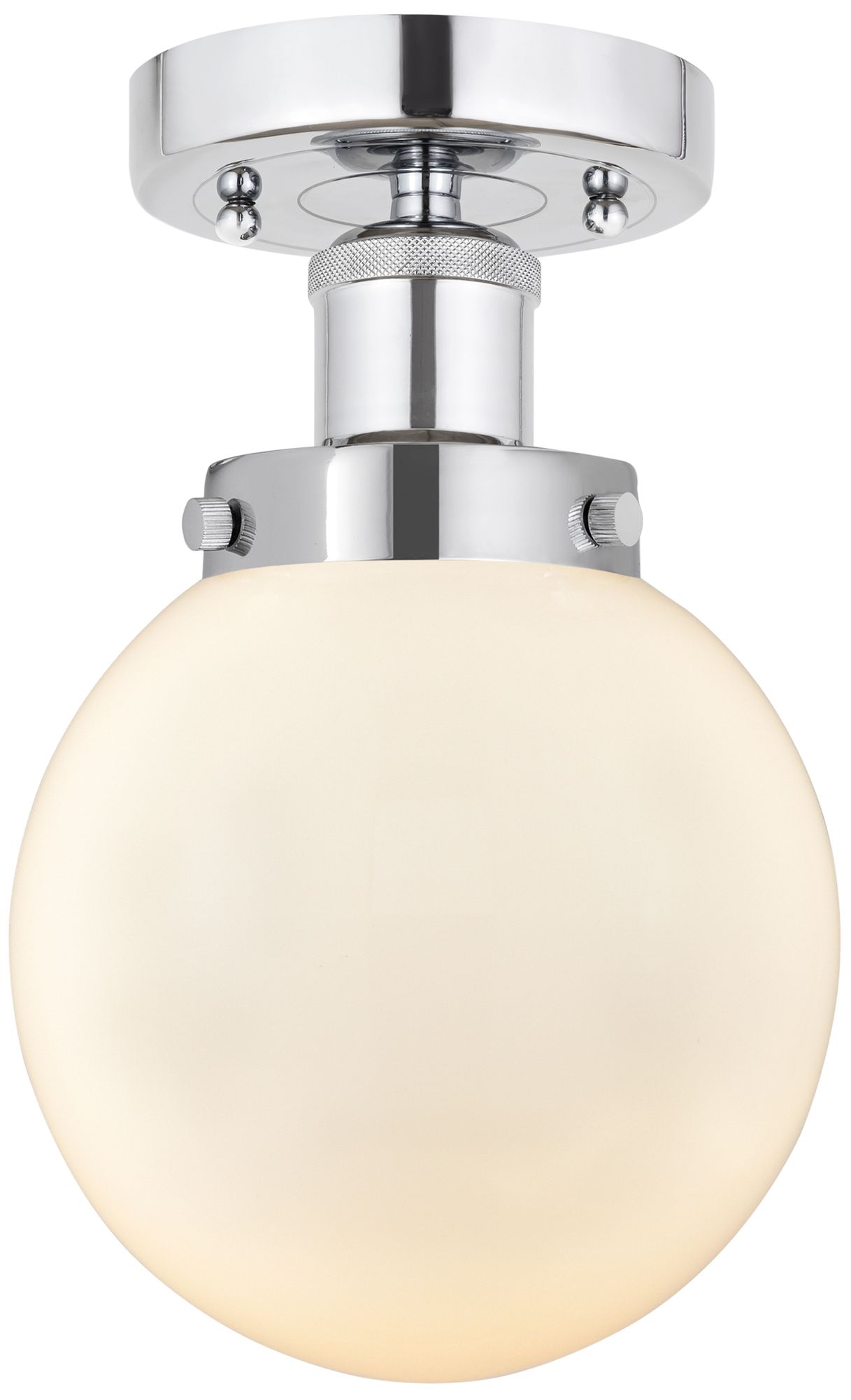 Small Edison Beacon 7" Polished Chrome Semi Flush Mount w/ White Shade
