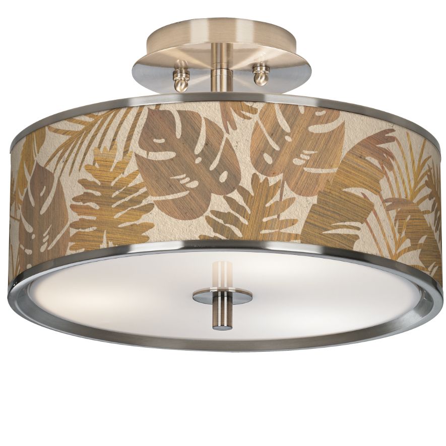Giclee Glow 14" Wide Tropical Woodwork Drum Semi-Flush Ceiling Light