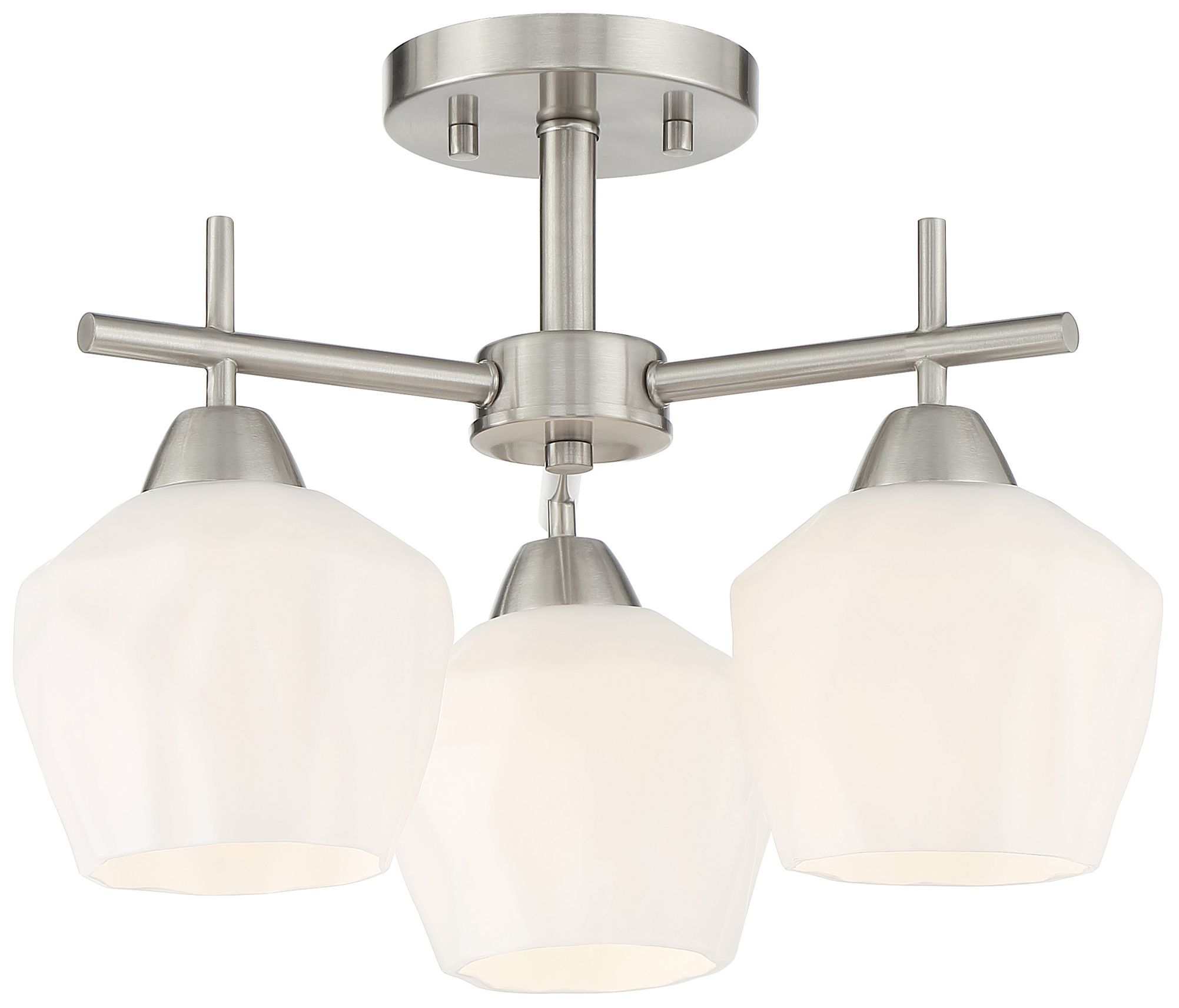 Gilmore 3 Light Brushed Nickel Semi-Flush with Shiny White Accents
