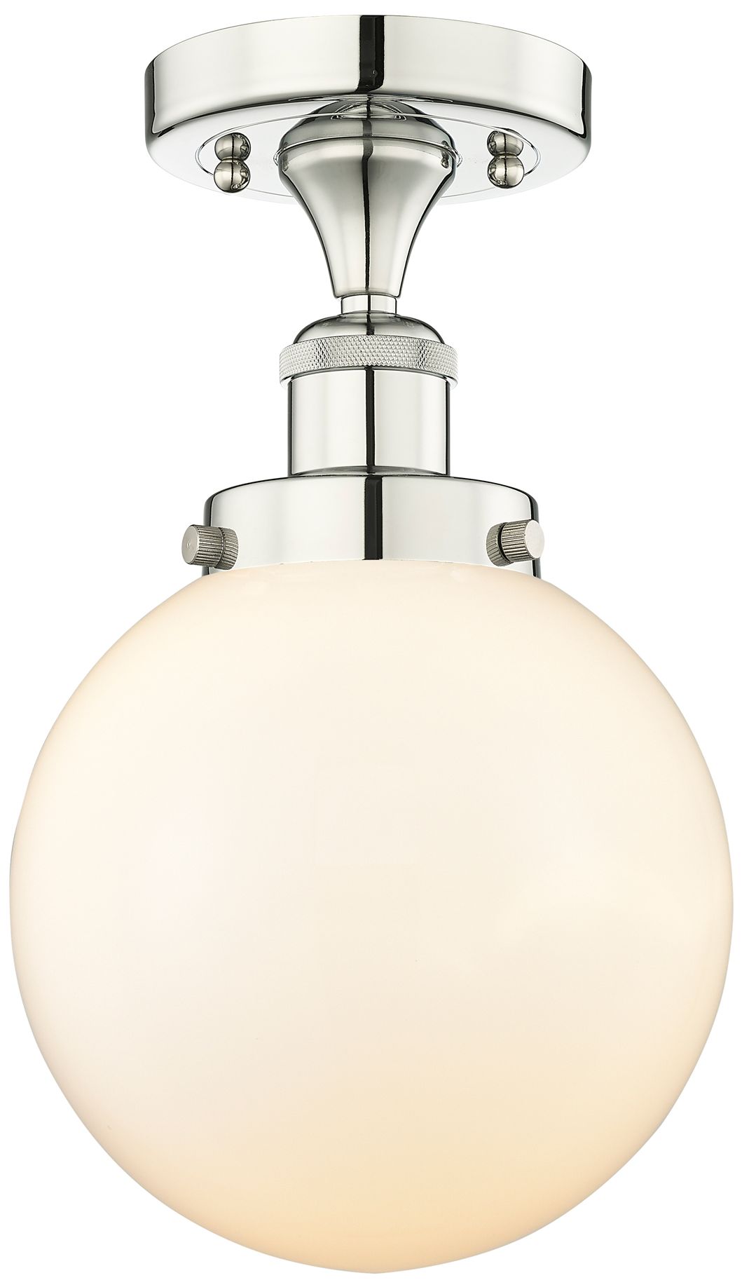 Beacon 8"W Polished Nickel Semi.Flush Mount With Matte White Glass Sha