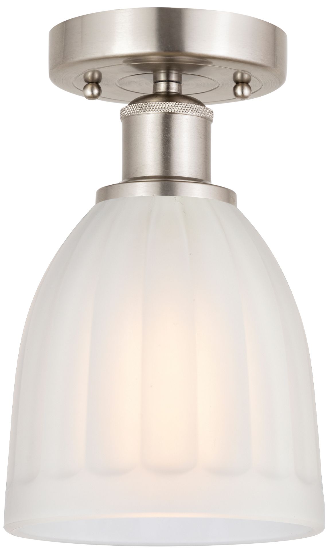 Edison Brookfield 6" Brushed Satin Nickel Semi Flush Mount w/ White Sh