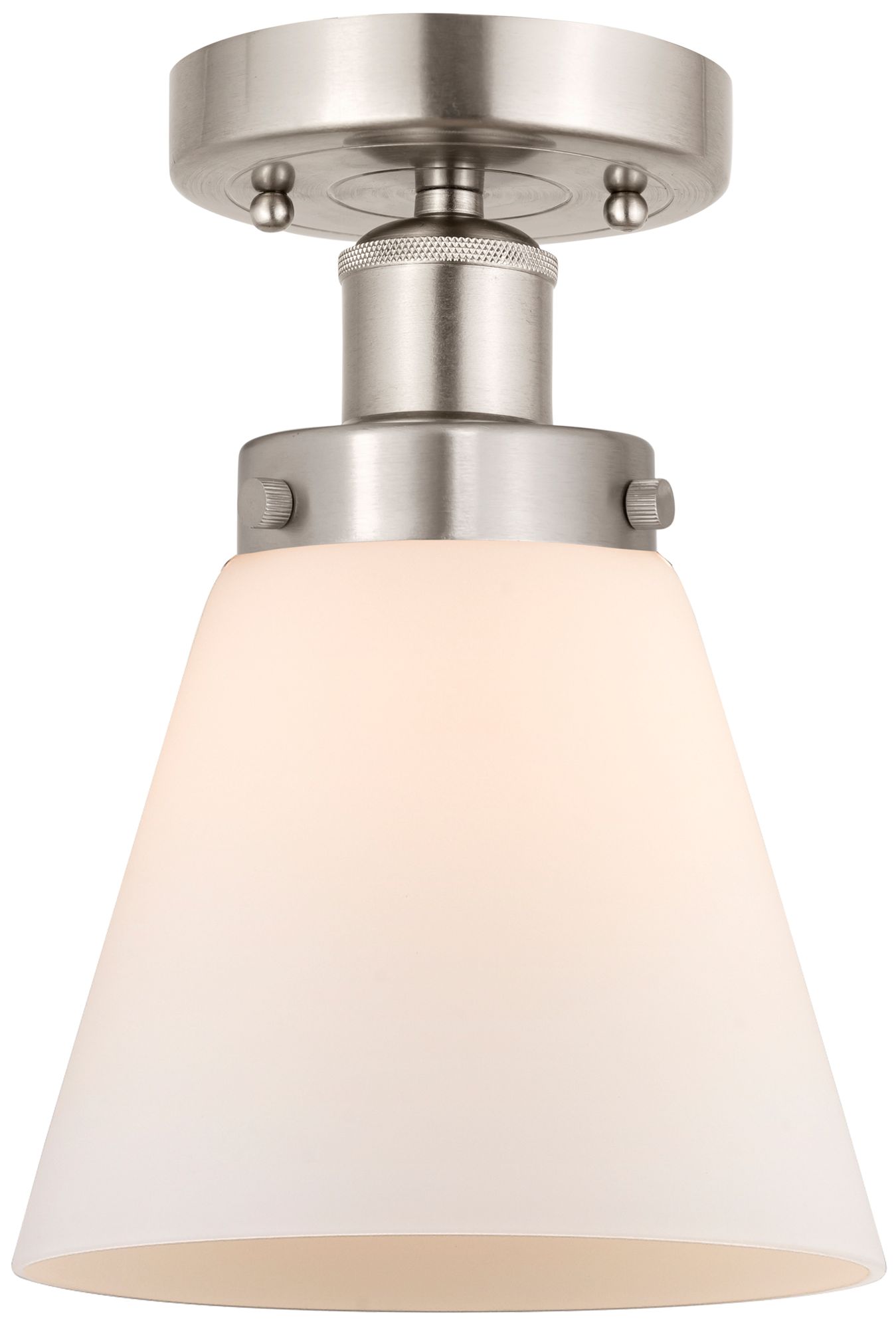 Edison Cone 7" Brushed Satin Nickel Semi Flush Mount w/ Matte White Sh