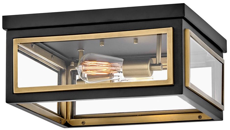 Hinkley Shaw 14" Wide Black and Brass 2-Light Ceiling Light