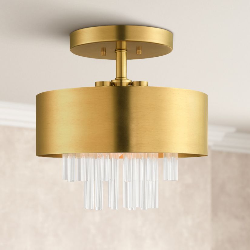 Orenberg 13" Wide Brass and Crystal Rods 3-Light Drum Ceiling Light