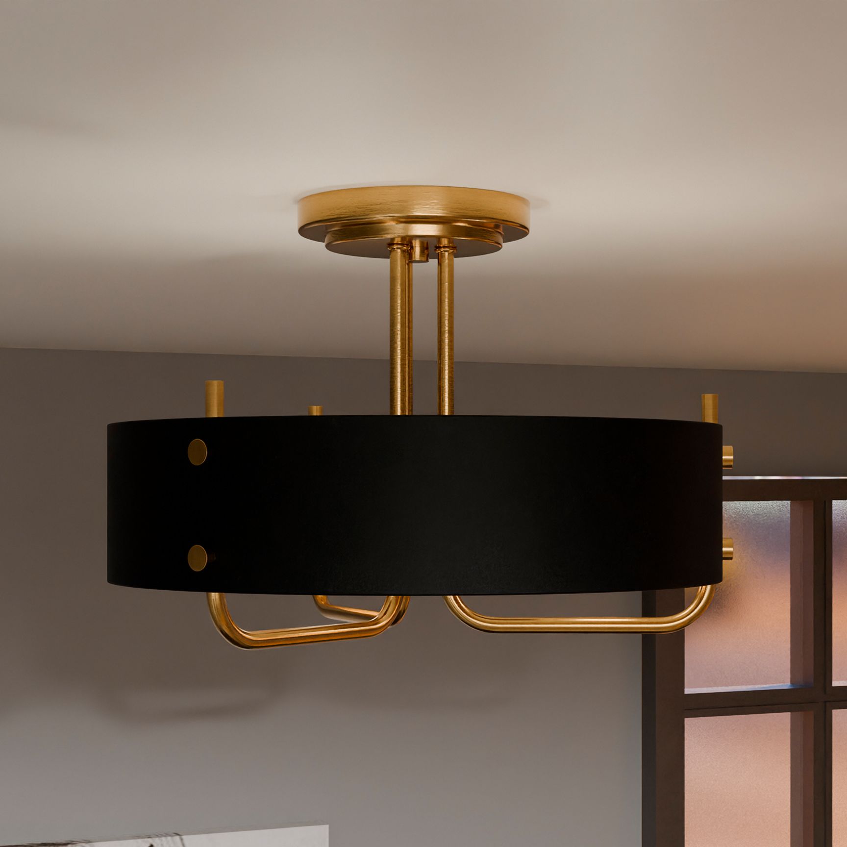 Dainolite Preston 15" Wide Aged Brass Black Drum Ceiling Light