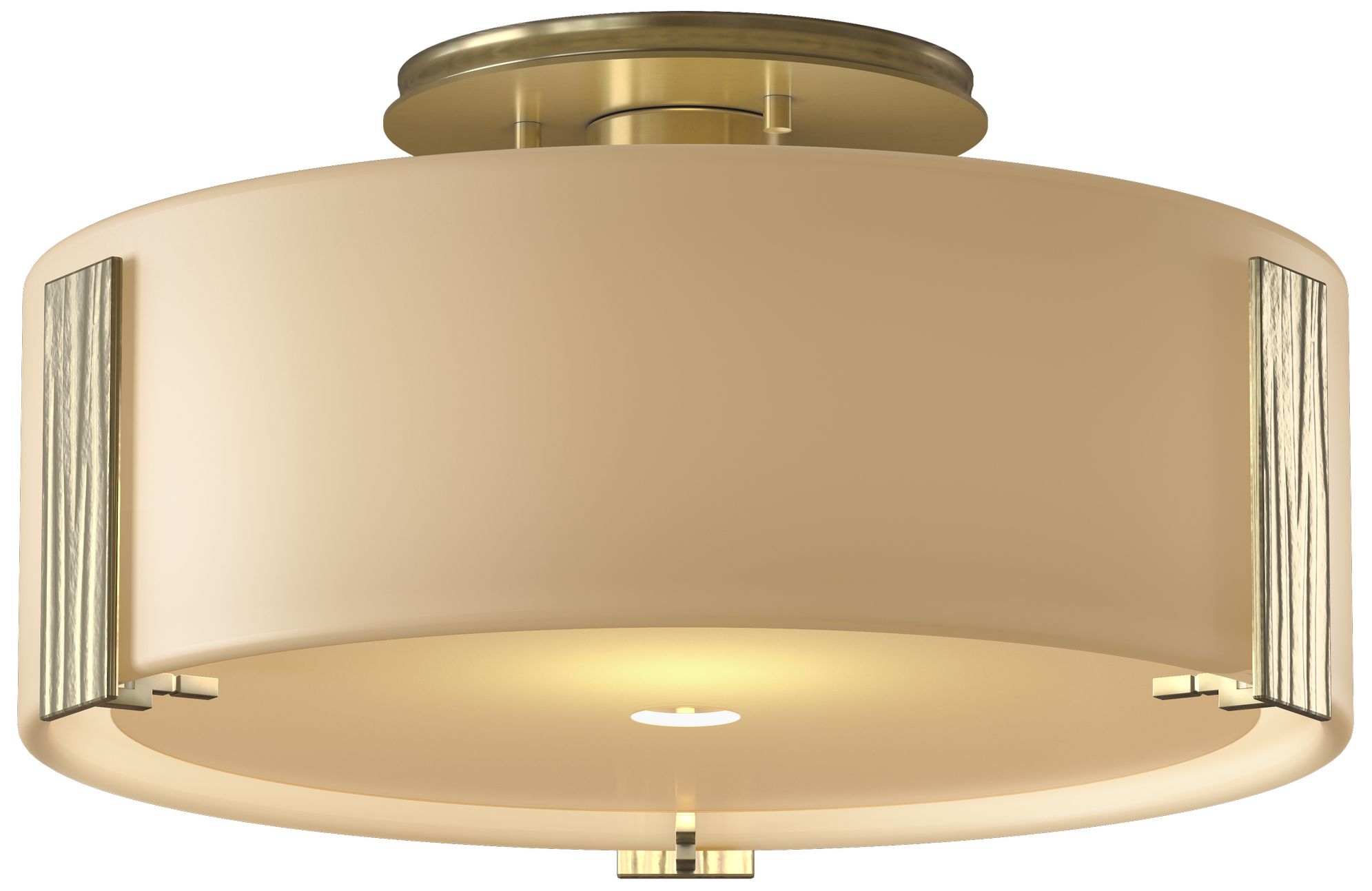 Impressions 11.8" Wide Modern Brass Semi-Flush With Opal Glass Shade