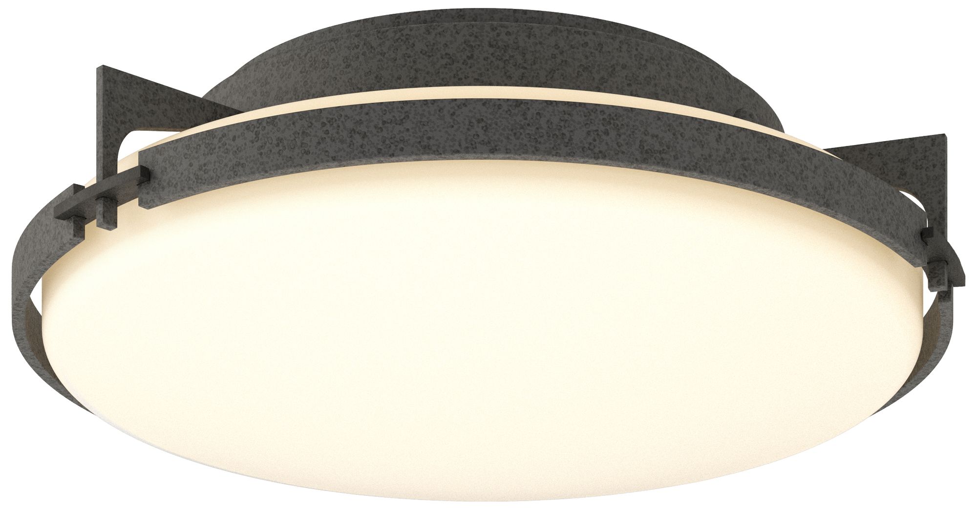 Metra 14.2" Wide Natural Iron Flush Mount With Opal Glass Shade